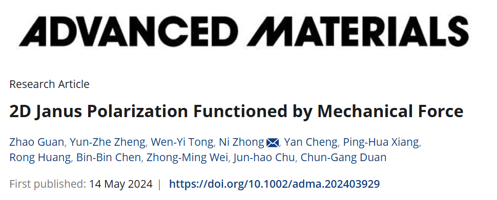 物理与电子科学学院极化材料与器件教育部重点实验室钟妮教授团队深入研究第四主族单硫化物GeSe的2D Janus状态,展示了利用机械力调控极化的新策略。该工作首次利用纳米探针在单层GeSe中引入了一种通过调制翘曲结构产生的新型2D Janus状态。通过SPM、 STEM、DFT等方法,实现并观察到了力诱导的原子级不对称翘曲畸变引起的面外、面内极性,为配置新型2D极化材料提供新颖的视角,具有巨大的应用前景。相关成果以Two-dimensional Janus Polarization Functioned by Mechanical Force为题发表于Advanced Materials上。
