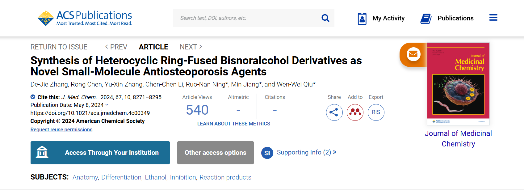JMC | 仇文卫团队报道从天然产物衍生物中发现抗骨质疏松活性分子