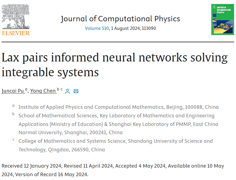 该成果于5月10日以Lax pairs informed neural networks solving integrable systems为题发表在Journal of Computational Physics上。