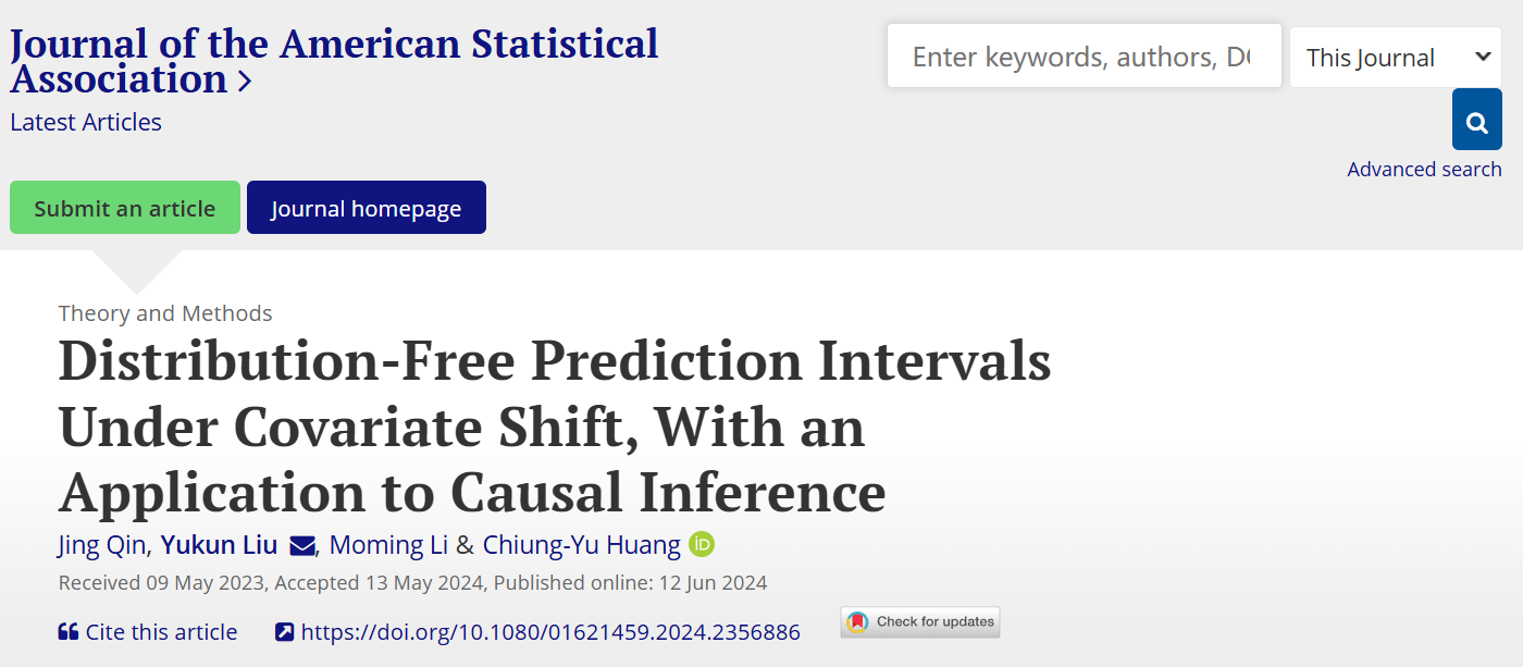 为此,基于参数化工作模型导出的枢轴量和重抽样方法,统计学院刘玉坤教授团队开发了一种新的共形预测区间构造方法,并用于因果推断。该方法不仅提高了经典方法的预测效率,而且具有近似覆盖率保证和双重稳健性,在医疗诊断、工业自动化等领域具有重要潜在应用价值。相关研究成果发表在统计学期刊Journal of the American Statistical Association。
