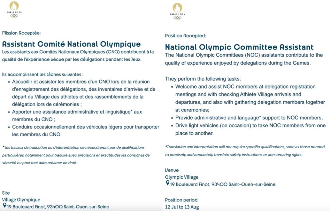 约两周后,我获得了法国驻华大使馆的2024巴黎奥运会志愿者offer,成为代表驻上海总领事馆的两位志愿者之一,将担任国家奥运委员会助理(Assistant Comité National Olympique)。