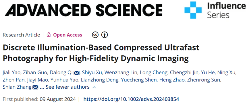 近日,完美网页版精密光谱科学与技术国家重点实验室齐大龙研究员、张诗按教授团队在高保真实时超快成像技术研究方面取得重要进展。相关研究成果以“Discrete illumination-based compressed ultrafast photography for high-fidelity dynamic imaging”为题,于2024年8月9日在线发表于国际顶级学术期刊Advanced Science(IF=14.3)。