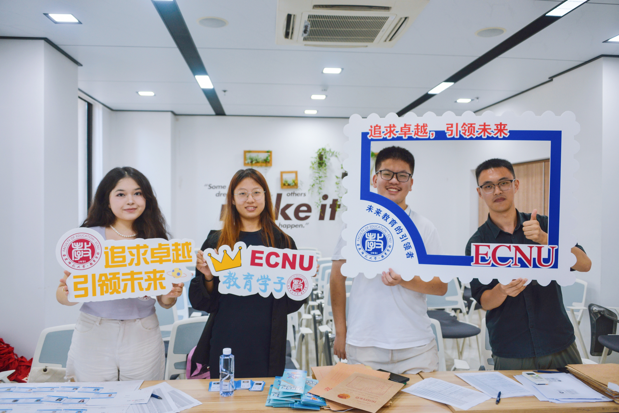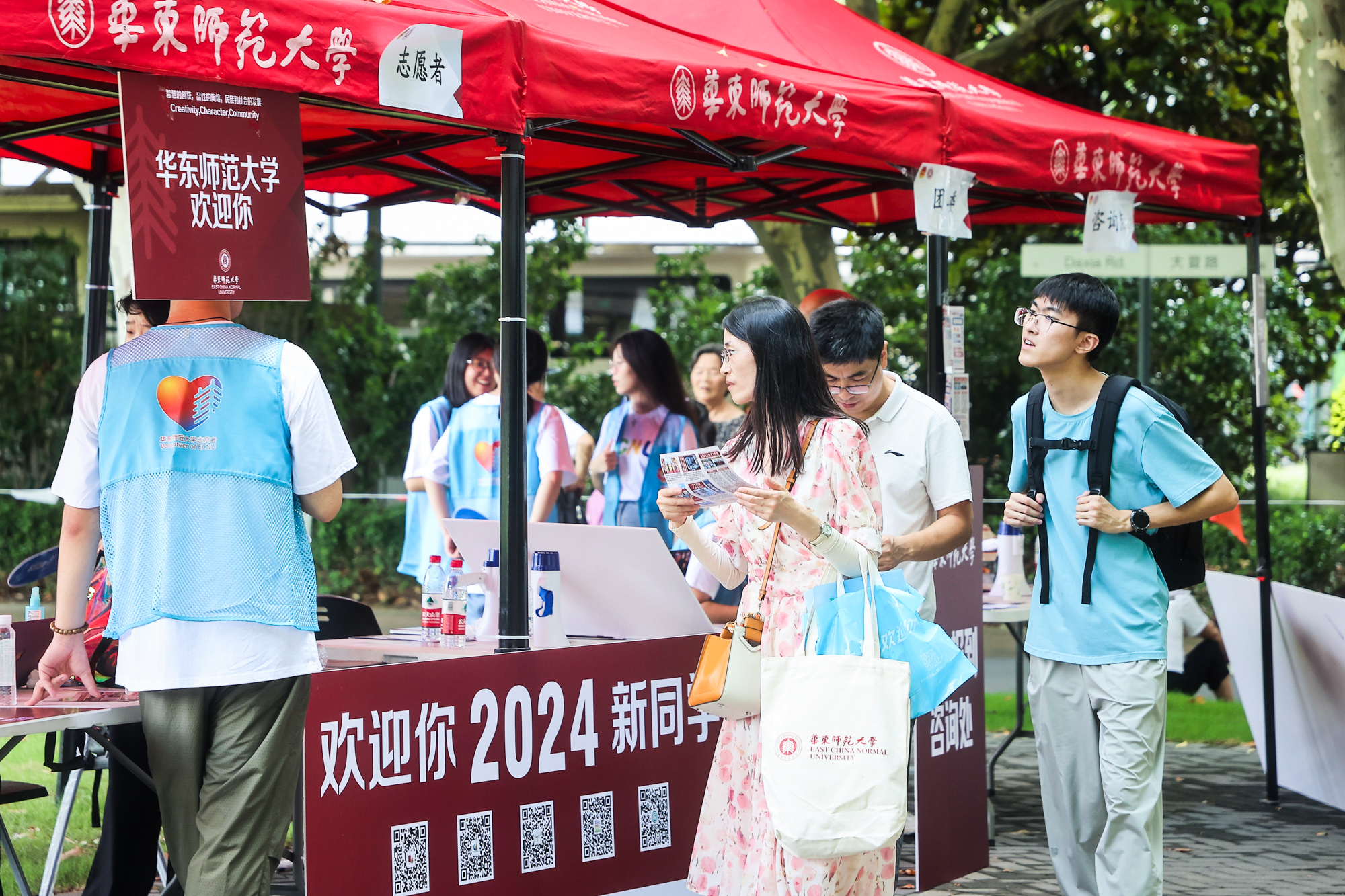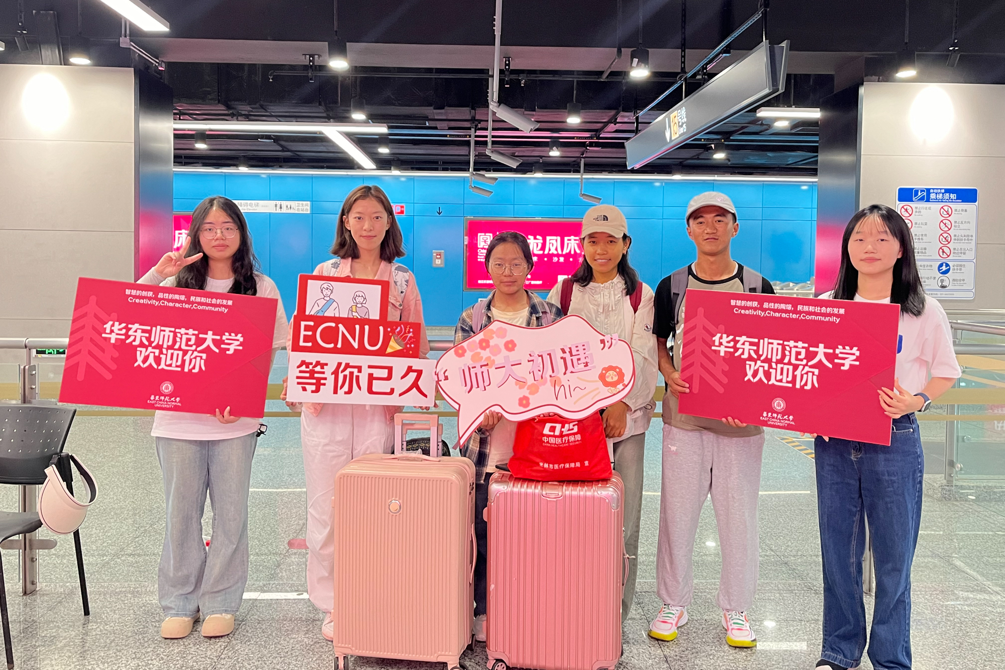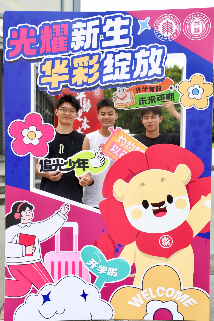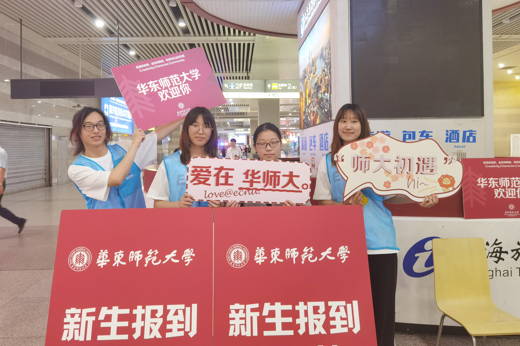 “你好,新同学”“ECNU等你已久”“新小花狮前来报到”……志愿者们举着欢迎牌,他们灿烂的笑脸、热情的问候和周到的服务,给新生们留下对于美好师大的第一印象。