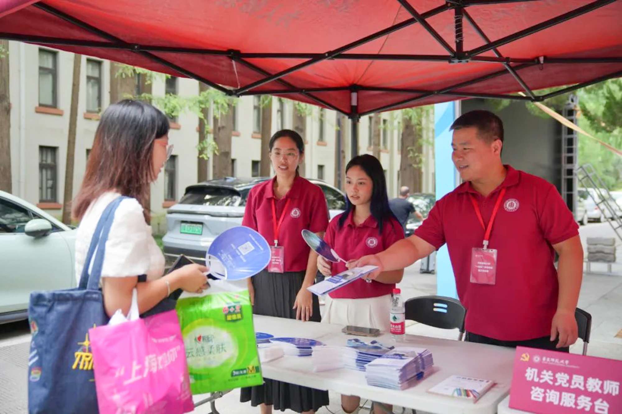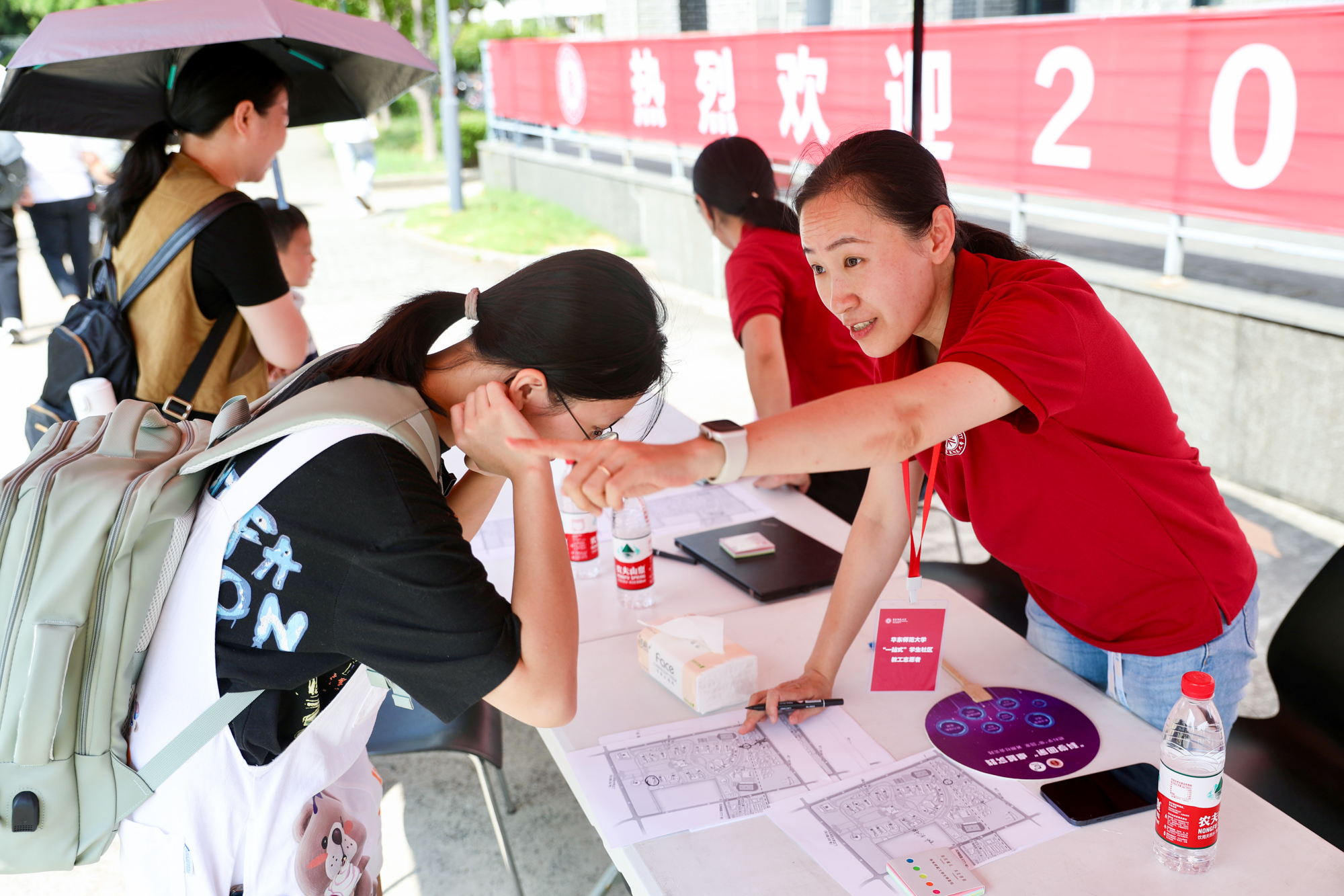 62位机关党员教师在本科生宿舍区域设立7个服务点开展志愿服务,为新生开展咨询答疑和现场引导。