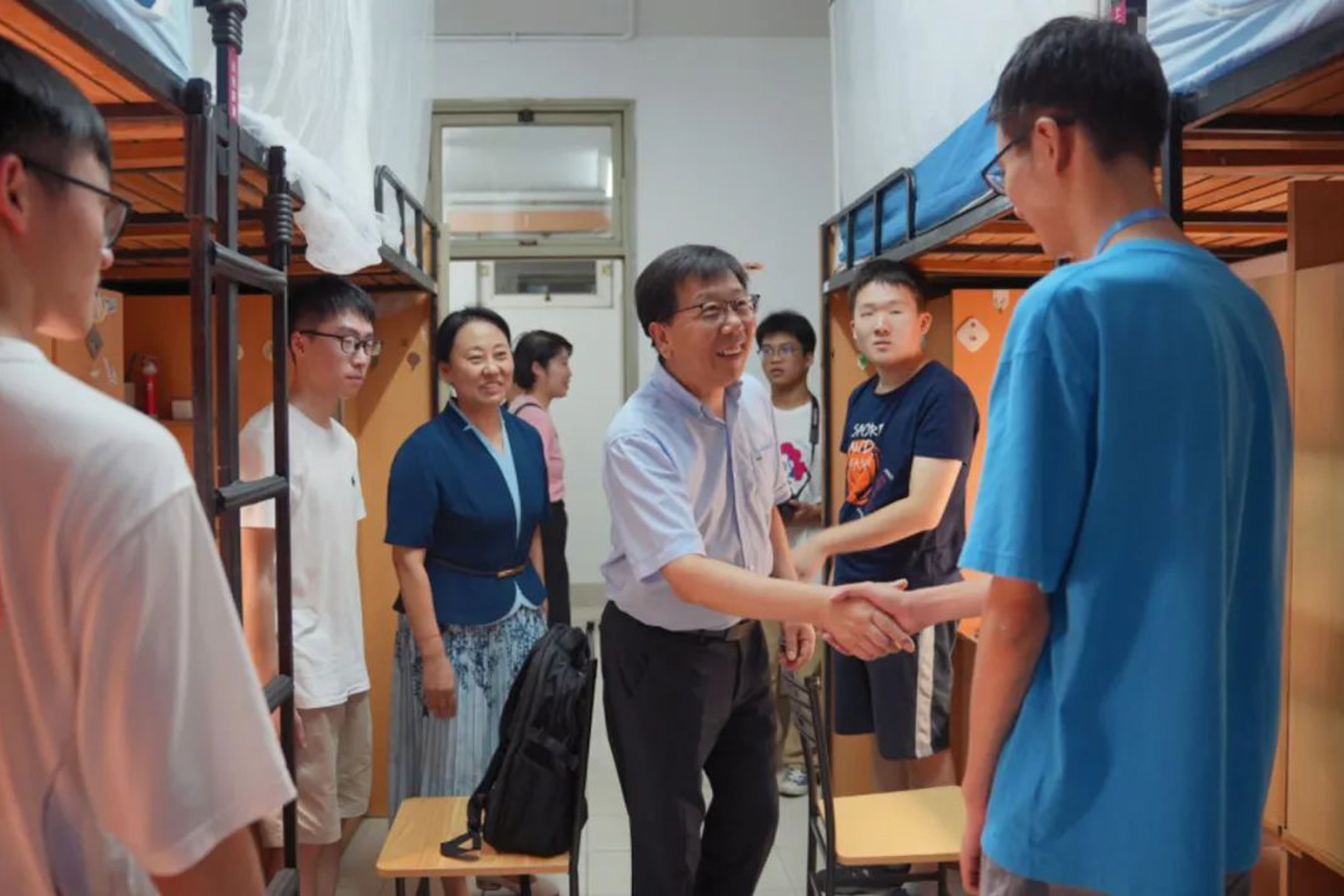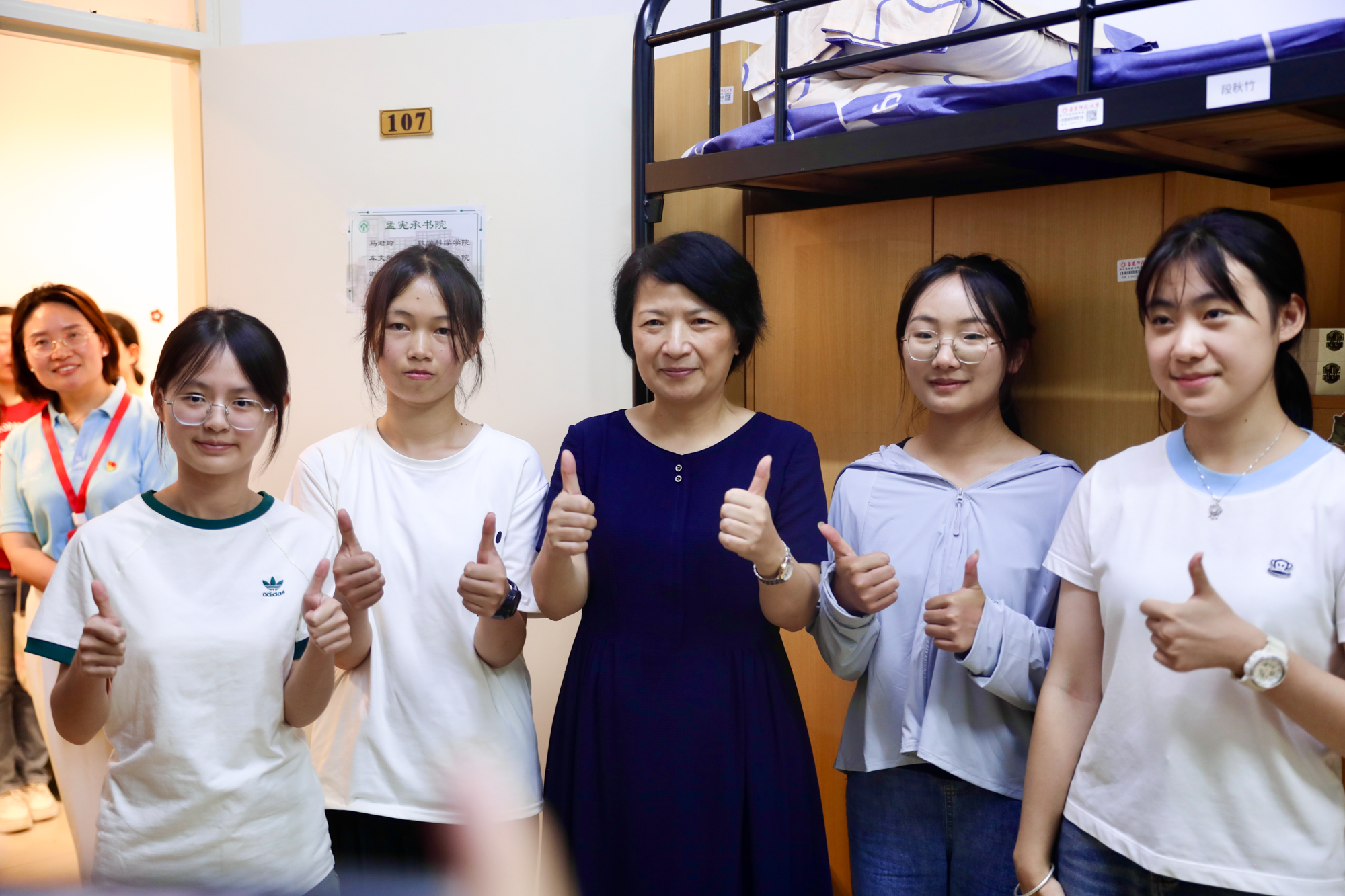 校领导梅兵、钱旭红、程静来到迎新现场、服务窗口和学生宿舍,看望新生,并慰问参与迎新工作的师生。