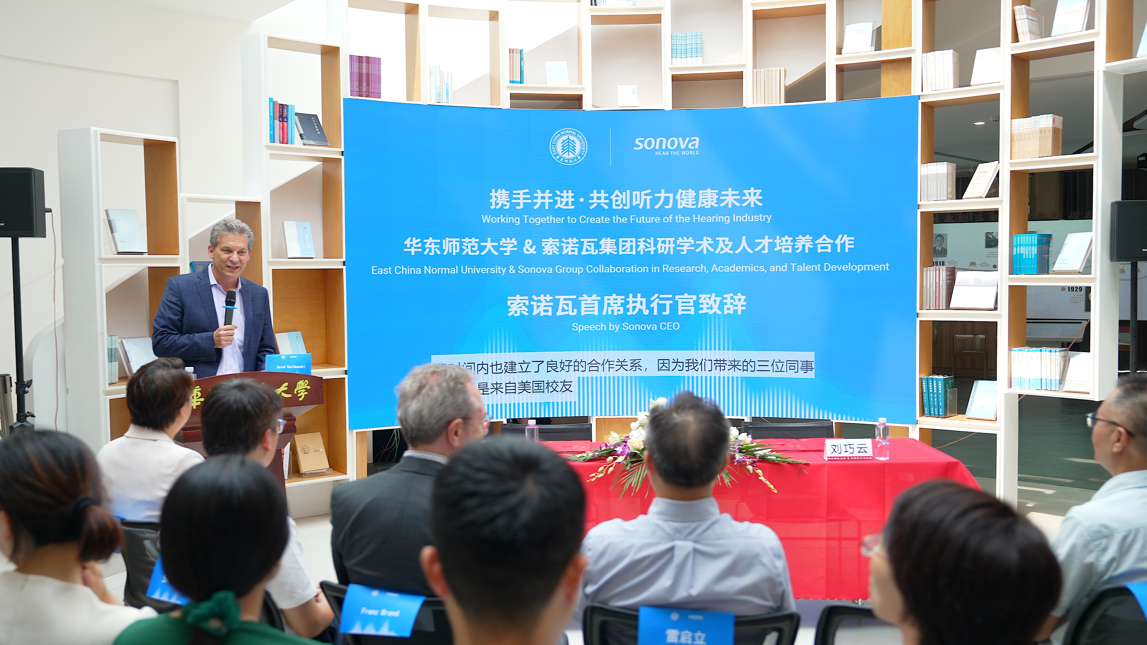 索诺瓦集团是全球领先的创新听力保健解决方案供应商,2017年就已经与康复科学系建立起了联系。7年来,康复科学系在索诺瓦进行了本硕博学生的现场实践教学,与索诺瓦合作开展了老年助听器使用的听配能研究、孤独症儿童听觉辅助装置佩戴的效果等研究,并聘请了索诺瓦中国区创新中心高级总监管晶晶为康复科学系实践导师。未来,双方将继续深化人才培养、科学研究和社会服务方面的合作,共同为实现“用专业与爱,让沟通无碍”的理想而努力。