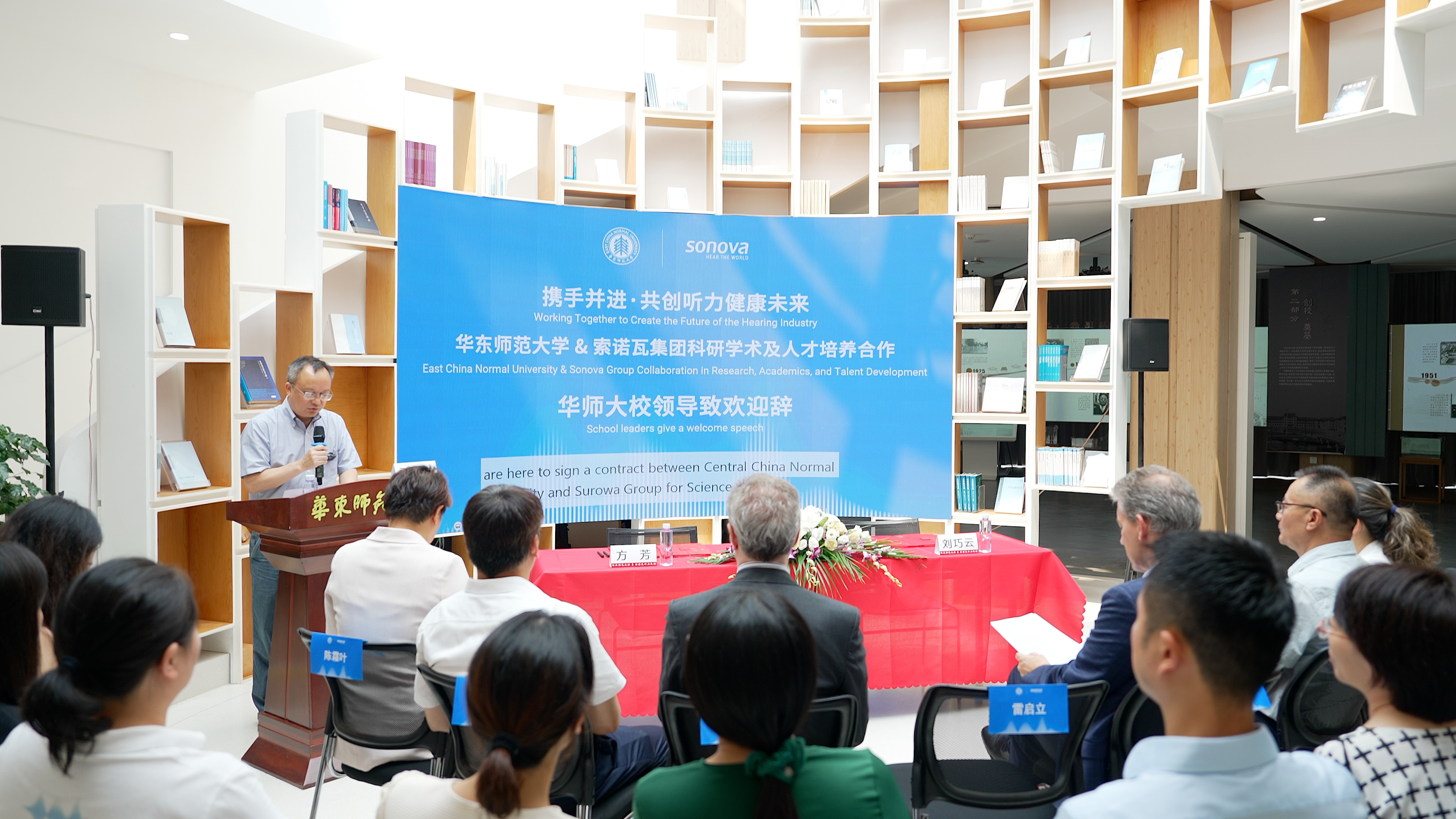 雷启立副校长对索诺瓦集团到访华师大表示热烈的欢迎,期望未来能充分发挥双方优势,共同开展听觉相关评估工具的研发工作,探索建立听力学微专业,面向社会大众普及听力保健知识,提高听力保健意识,共同促进无障碍声学环境建设。