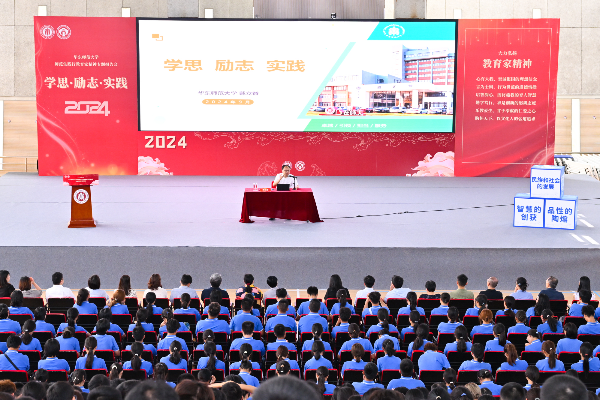 戴立益作关于“学思·励志·实践”的专题报告。报告带领师生深入解读二十届三中全会和全国教育大会精神,论证新时代教育积极弘扬教育家精神的必要性,深刻阐释中国特有的教育家精神的丰富内涵和实践要求。戴立益认为,新时代的“大先生之大”,在于历史跟未来的大维度、本土和世界的大格局、教室和社会的大课堂、循规和突破的大智慧、小我和大我的大情怀;完美网页版的育人画像是“脚踏实地的理想主义者、热忱执着的终身学习者、温文尔雅的传道授业者”。