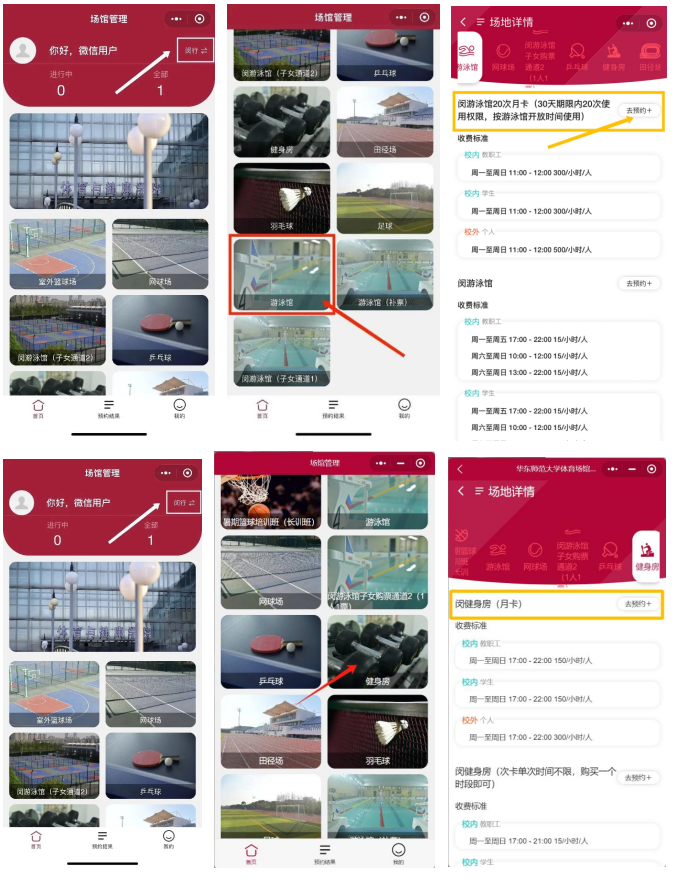 说明:月卡可通过完美网页版体育场馆管理系统小程序内“游泳馆月卡预约”或“健身房月卡预约”通道进行购买。月卡自办理日起有效期为30日。其中,游泳馆月卡有效期内可使用20次。健身房月卡有效期内不限使用次数,无论健身器械还是团操课程任你随意使用。