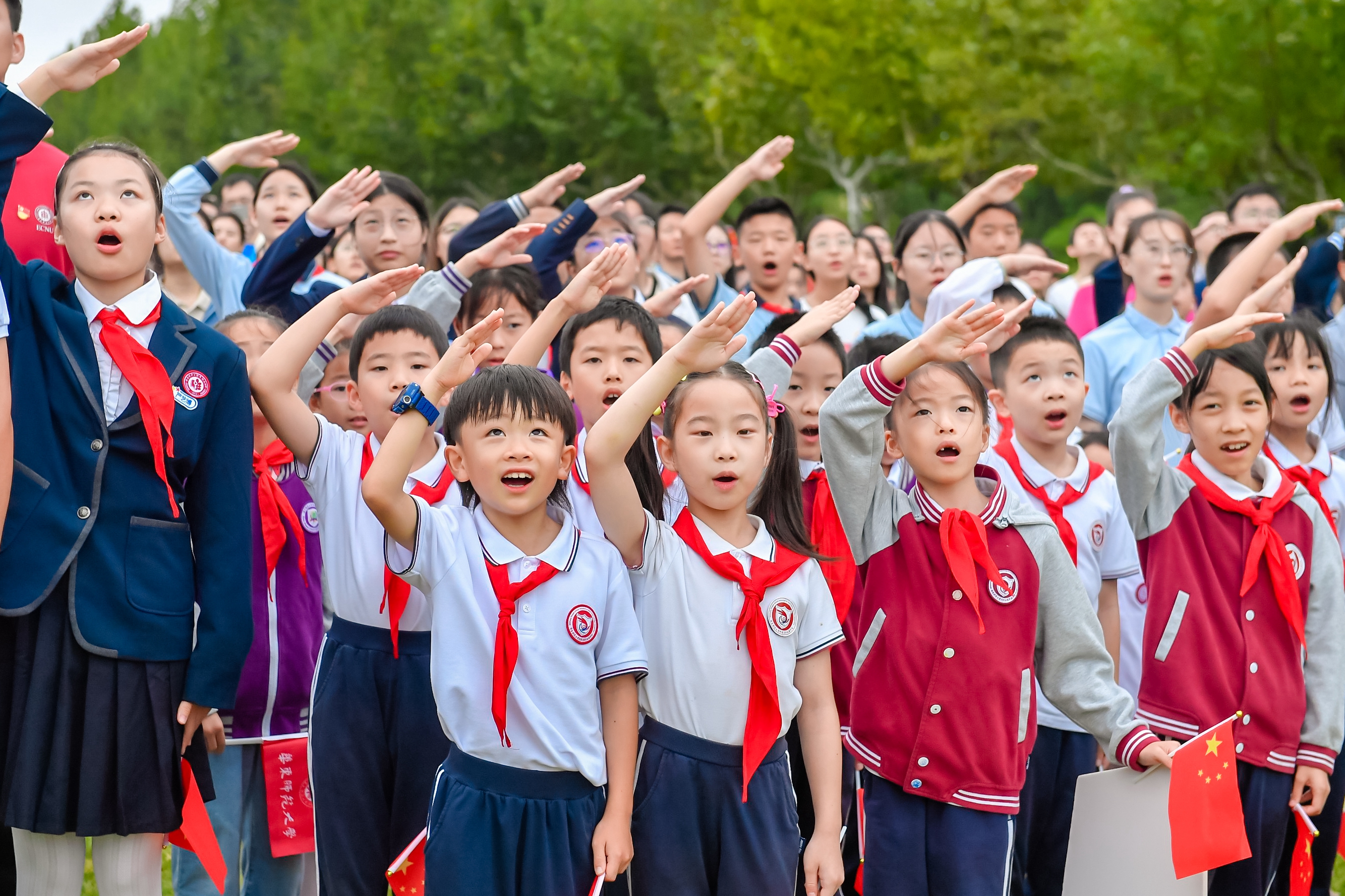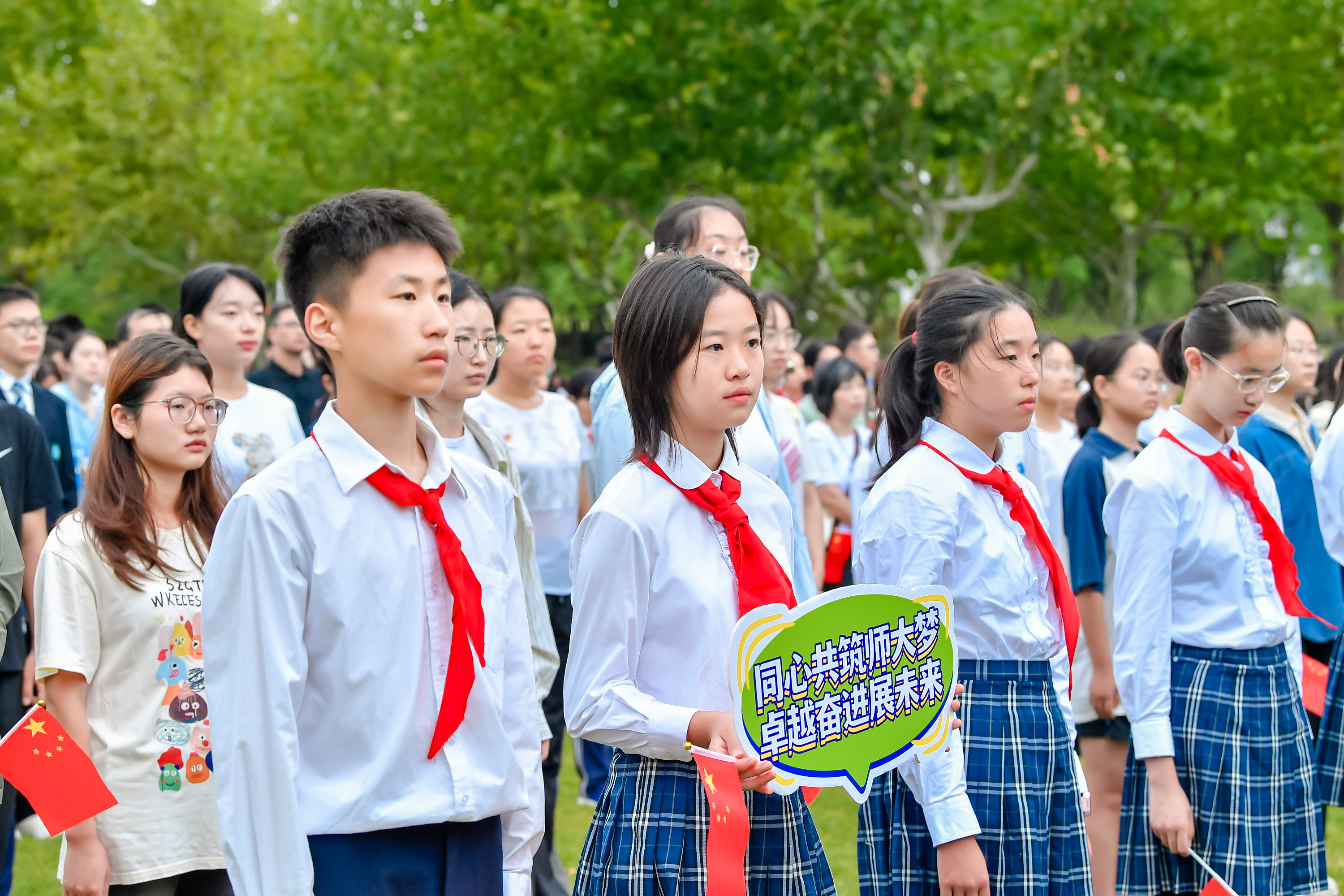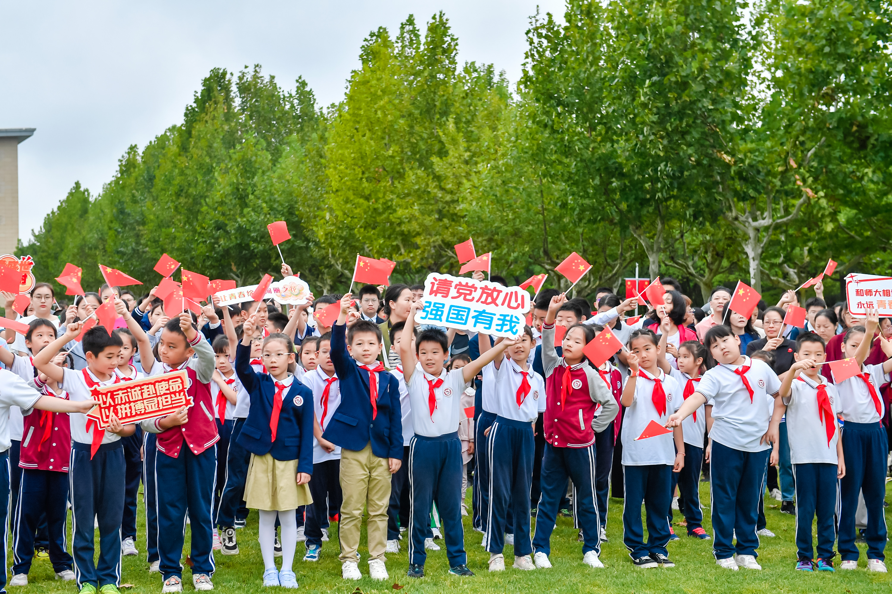 小学生陈绍远说,要立志接过先辈们的接力棒,用实际行动为祖国的繁荣昌盛奉献自己的力量。小学生李梦燊拥有长大当老师的“小梦想”,她希望能像无数的奋斗者那样,为实现中华民族伟大复兴的“大梦想”做出贡献。初中生周可馨说,爱国之心根植于每个人的血脉中,高唱国歌时她感受到了爱国之情在心头澎湃涌动。高中生武颖辰激动地说:“我们是幸运的一代,在自豪于过去辉煌的同时,更要将爱国之心化作报国之志,肩负起时代赋予我们的责任与使命。今天,国家是我们的依靠;明天,我们必将成为祖国的骄傲!”
