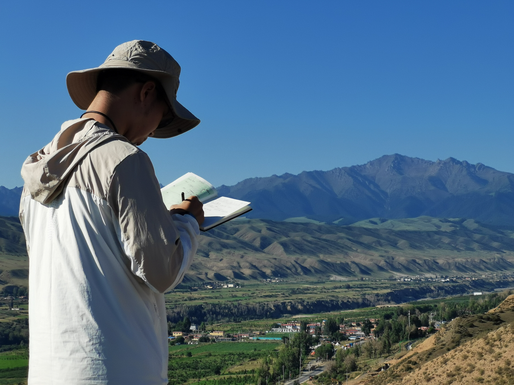 每次出发前,江东翼都会提前查阅专业书籍,寻找地图资料,准备好罗盘、望远镜、手电筒、急救包、样品袋……在野外,他总是随身带着记录本,做好笔记留下宝贵的一手资料。“我常在博物馆看到老一辈地理学家的野外记录本,他们在极其艰苦的条件下依然保持严谨的科学精神和踏实的工作态度,这是我不断学习与追求的榜样。”