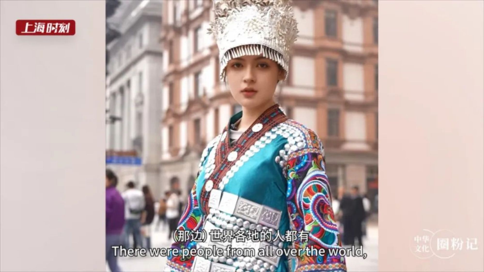在游人如织的外滩、南京路步行街,她身着色彩靓丽、款式考究的中国民族传统服饰,宛如穿越时空而来,秀出“最炫民族风”。