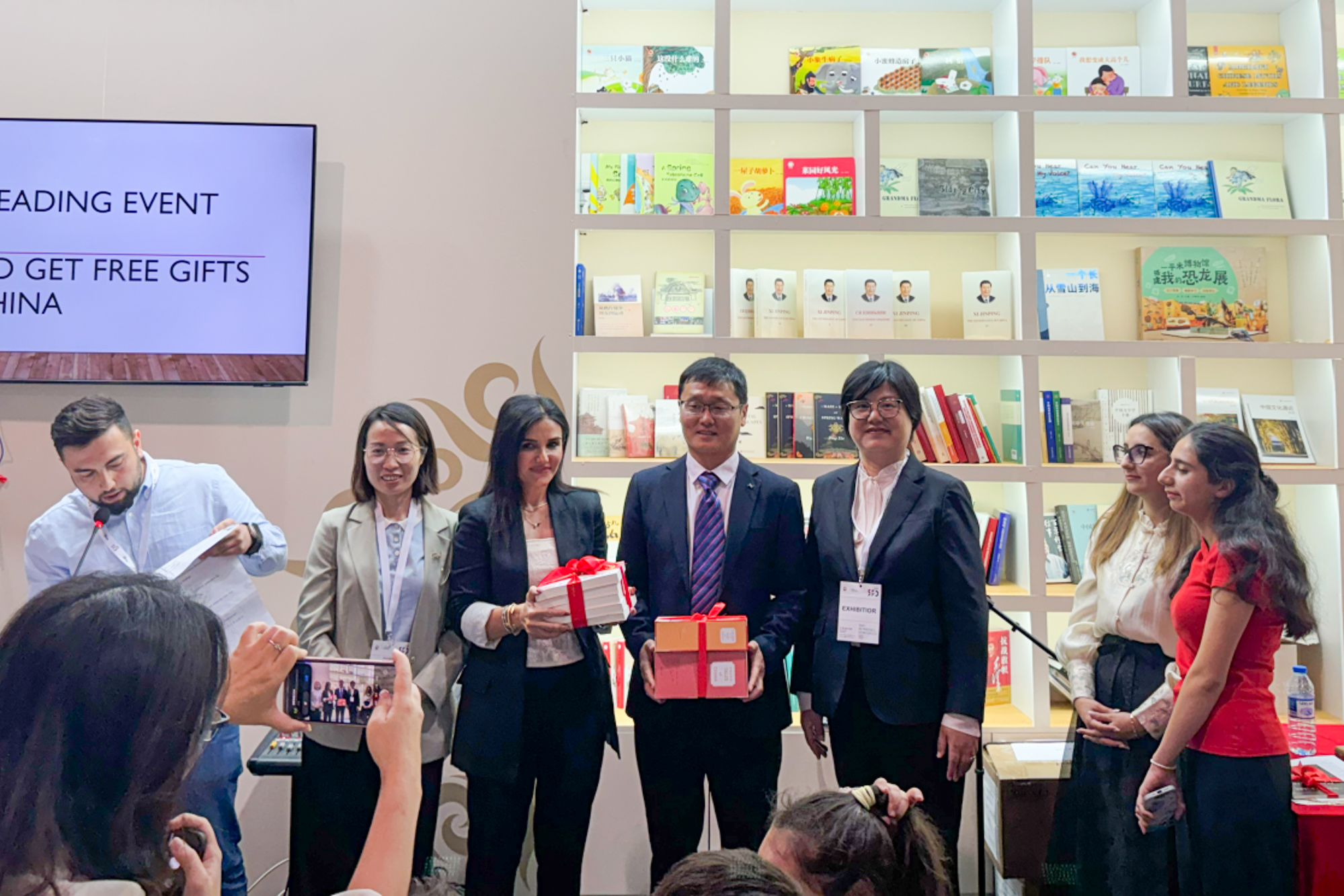 “阅读中国”展台受到了阿塞拜疆读者的喜爱。除了翻阅书籍,他们还与现场的中国参展人员积极互动:一声声中文问候“你好”,一句句中、英、俄、阿文询问“这本书可以买吗?”“我的孩子想学中文,这本书适合他吗?”“我想看《西游记》,这里有阿塞拜疆文版的吗?”……甚至有小读者与参展人员交流喜欢的球星,有上了年纪的大叔深情地向参展人员说“国庆节快乐”。