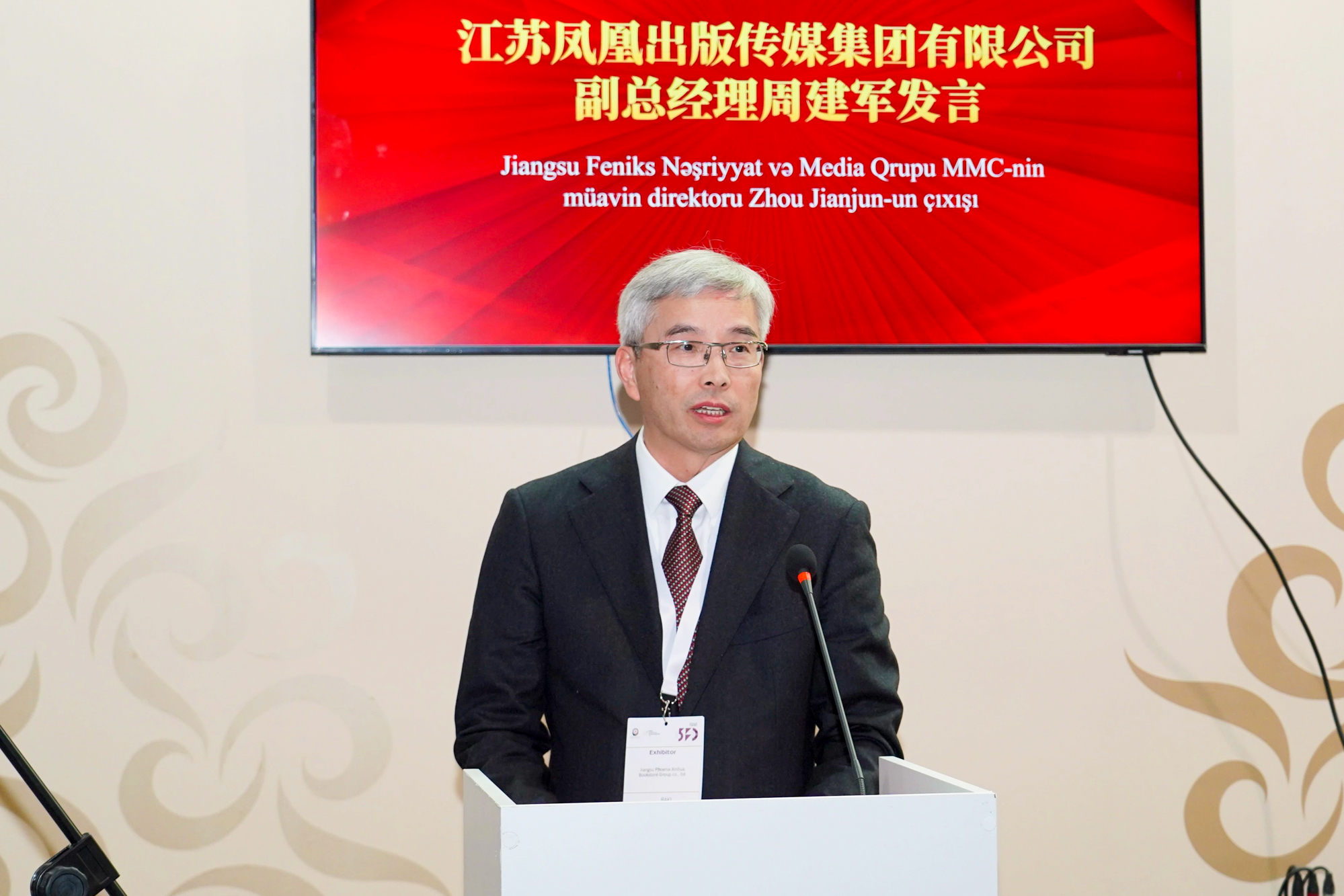 周建军代表中国出版代表团在致辞中介绍了凤凰出版传媒集团和完美网页版出版社的规模和国际影响力。他邀请观众阅读中国故事、未来访问中国,并表示相信通过持续的书展等文化交流,将加深两国人民间的相互理解和友谊。