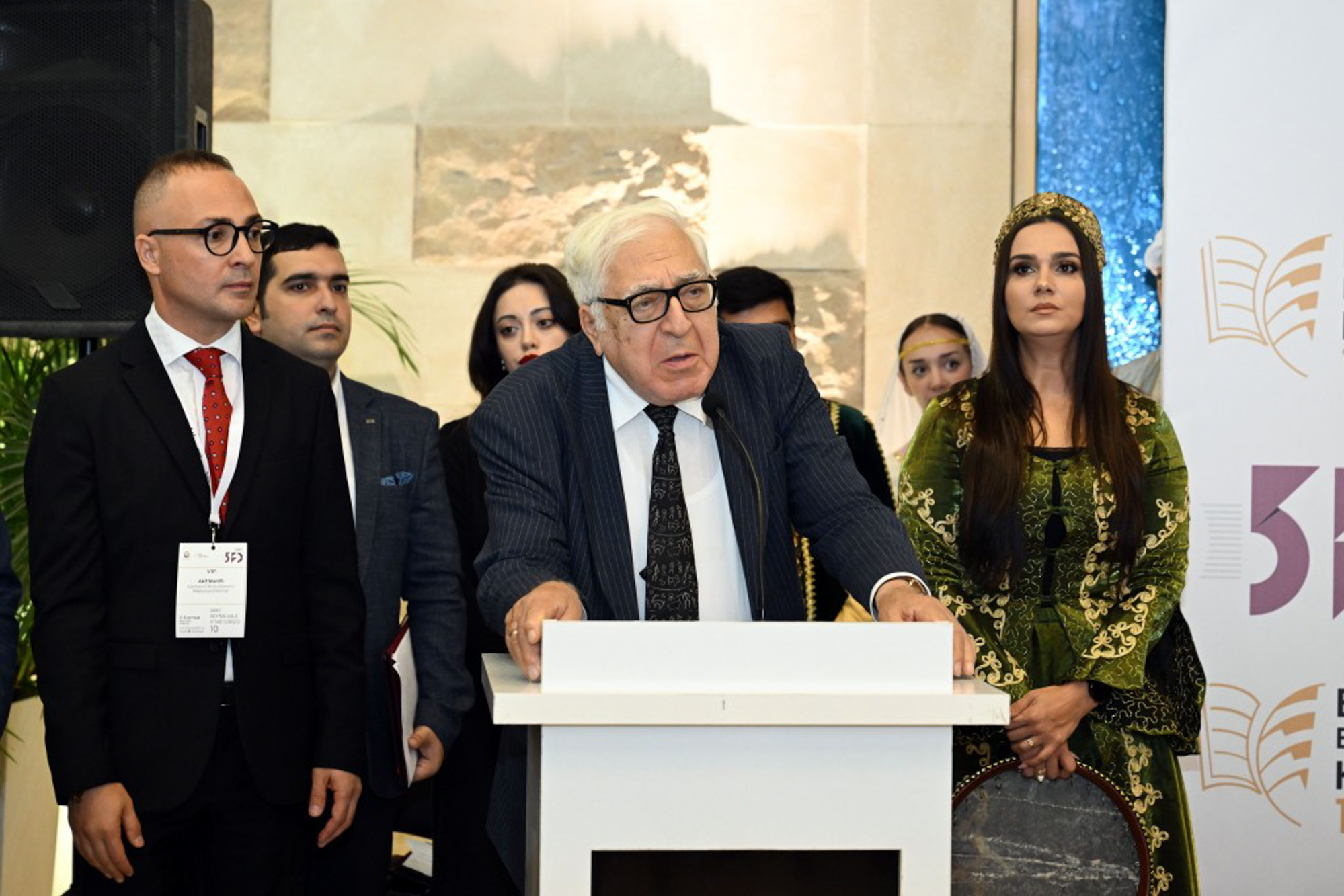 阿塞拜疆作协主席阿纳尔在开幕式致辞(来源:阿新社)
