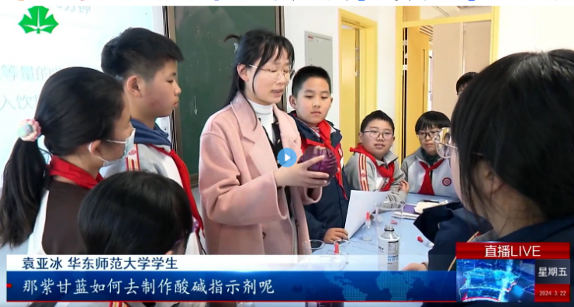 上海教育电视台报道完美(中国)官方《化学小侦探》师范生团队在完美网页版第五附属学校上课情况