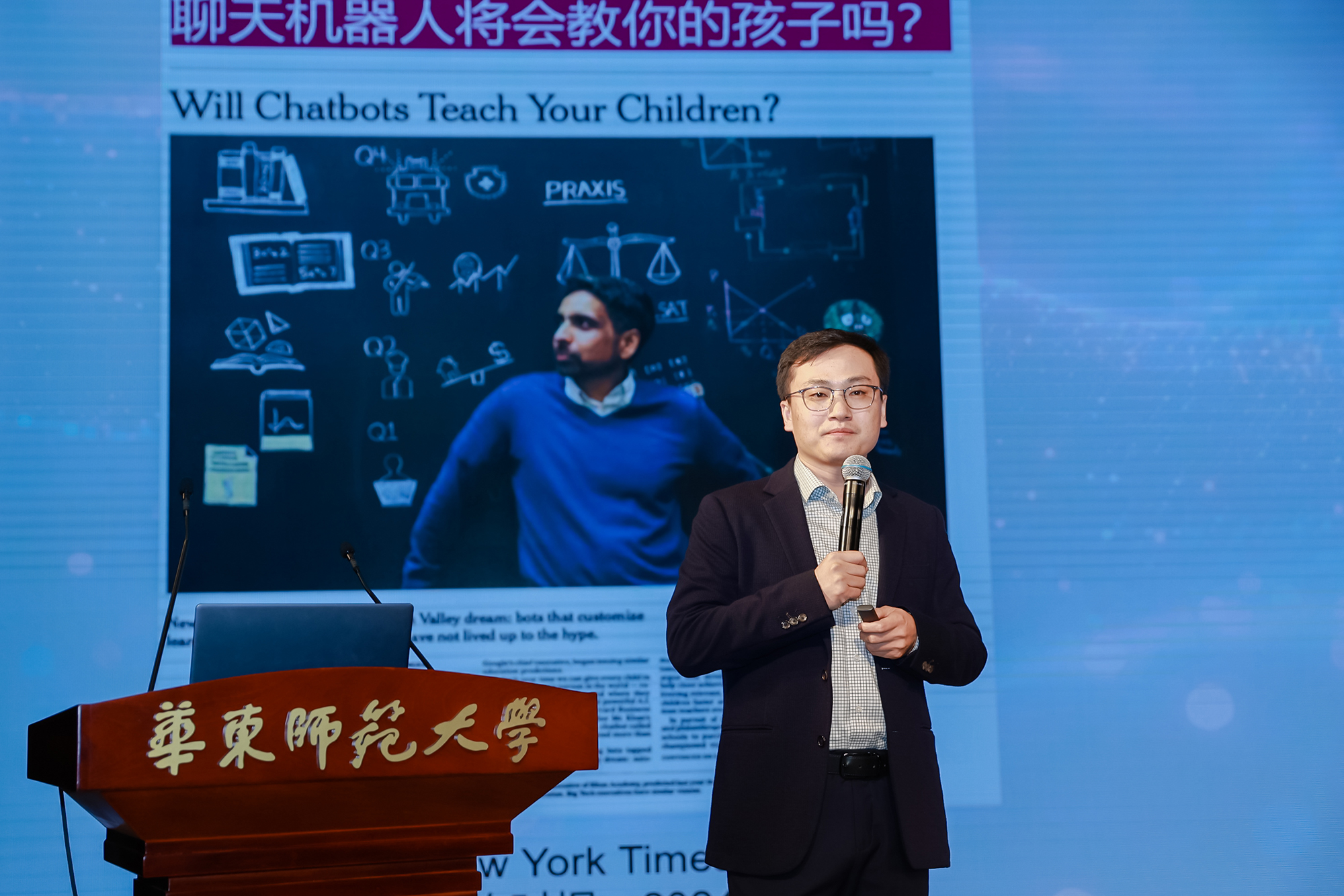 上海智能教育研究院院长周爱民主持智能教育成果展示环节