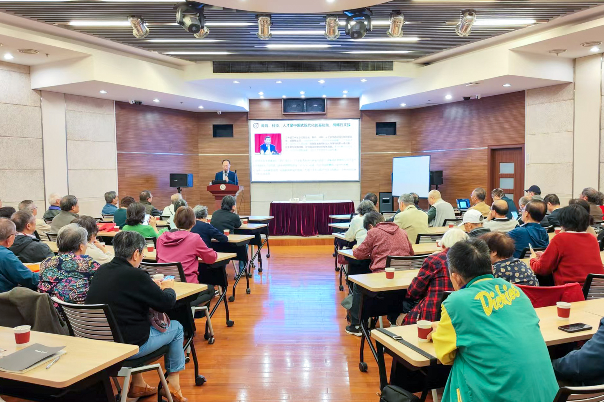 10月23日上午,离退休干部校情通报会暨报告会在普陀校区逸夫楼多功能厅召开。学校离休干部、退休老领导、老教协理事会成员、关工委委员、退休党支部书记、老教协分会会长、二级关工委委员、特邀党建组织员、机关宣讲团成员、退休示范党支部党员代表等100余人参加了会议。会议由老干部党委副书记李海芬主持。