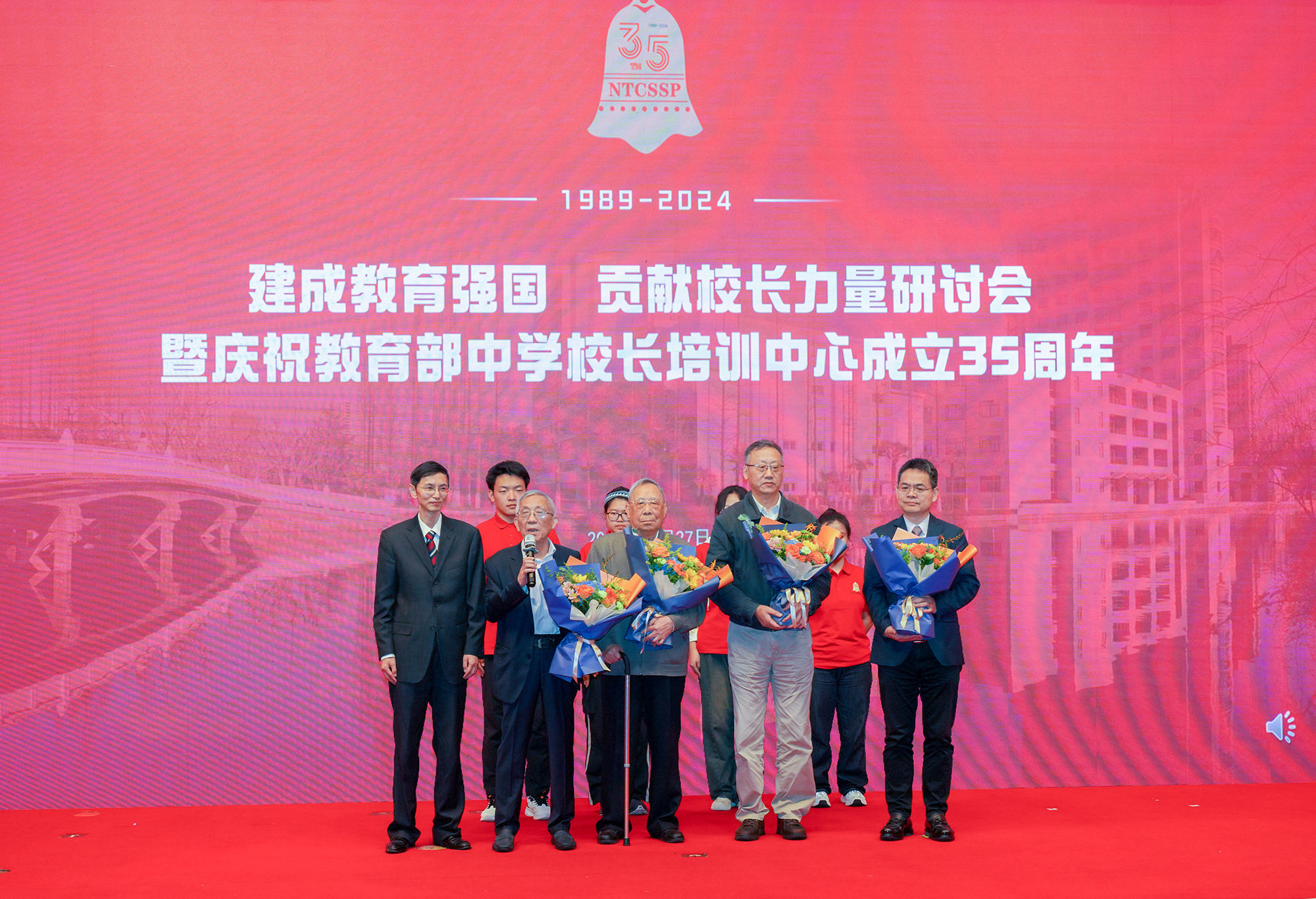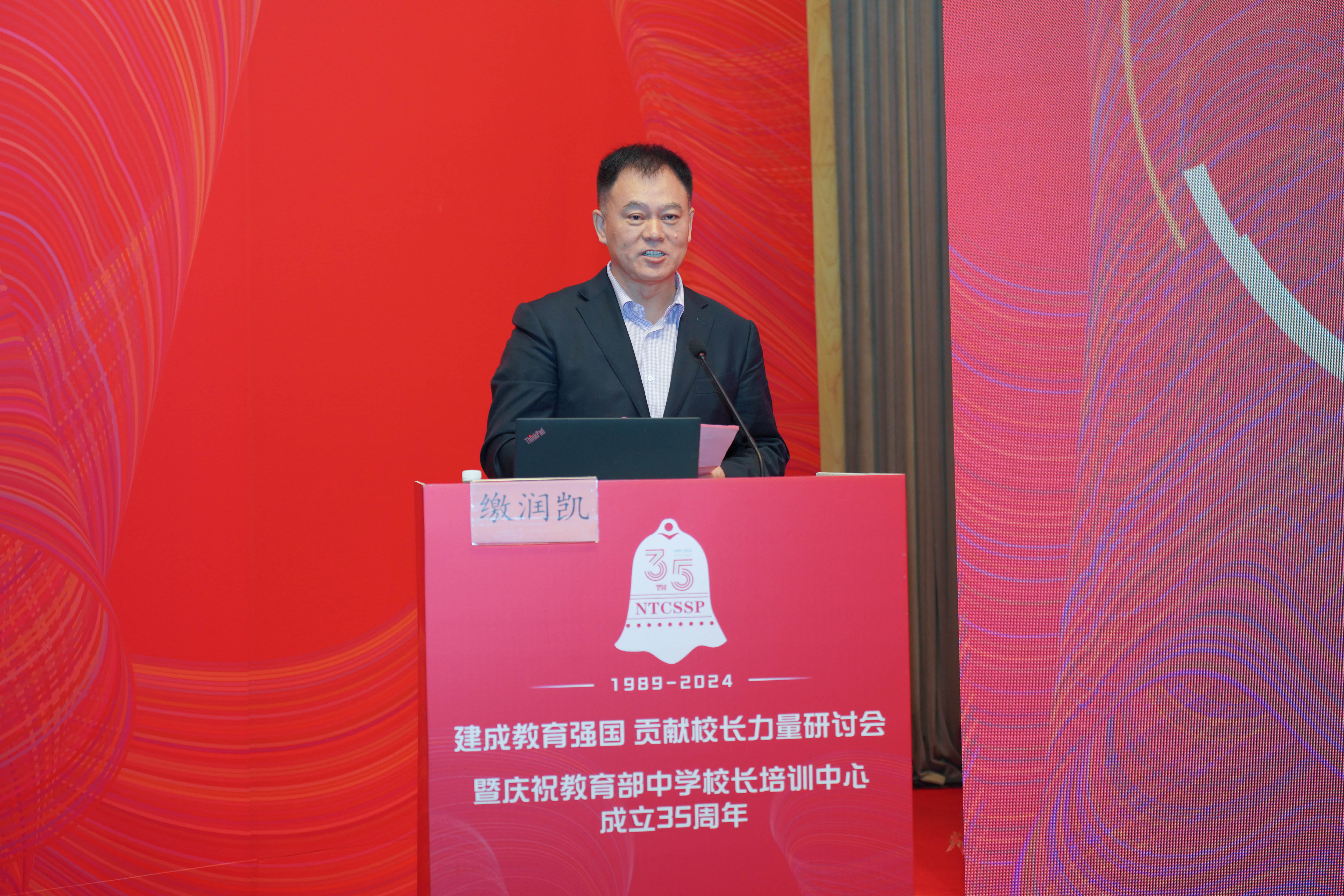 国家教育行政学院发来贺信说,35年来,校长培训中心始终遵循教育规律和干部成长规律,增强教育自觉、启迪校长智慧、推进培训创新、引领学校发展,为国家和基础教育培养了大批堪当时代大任的栋梁之才,走出了一条符合国情的“高水平、专业化、优质化、国际化”的中国特色校长培训发展道路。面向未来,国家教育行政学院将与校长培训中心开展更加紧密的全方位合作交流,共同推进中国特色的干部教育培训体系建设。教育部中小学校长和幼儿园园长国家级培训项目管理办公室主任于维涛宣读了贺信。