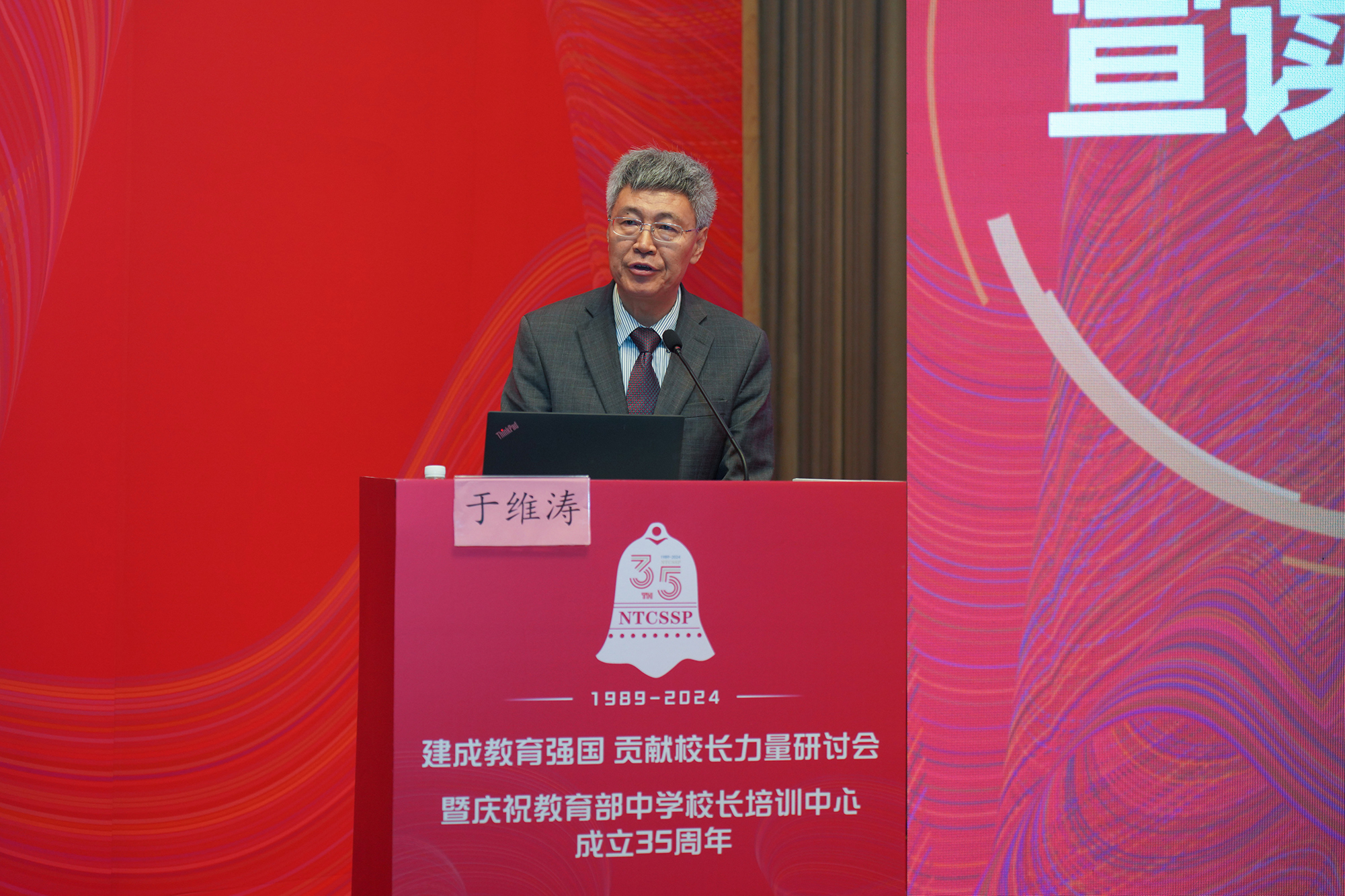 教育部中小学校长和幼儿园园长国家级培训项目管理办公室主任于维涛宣读贺信