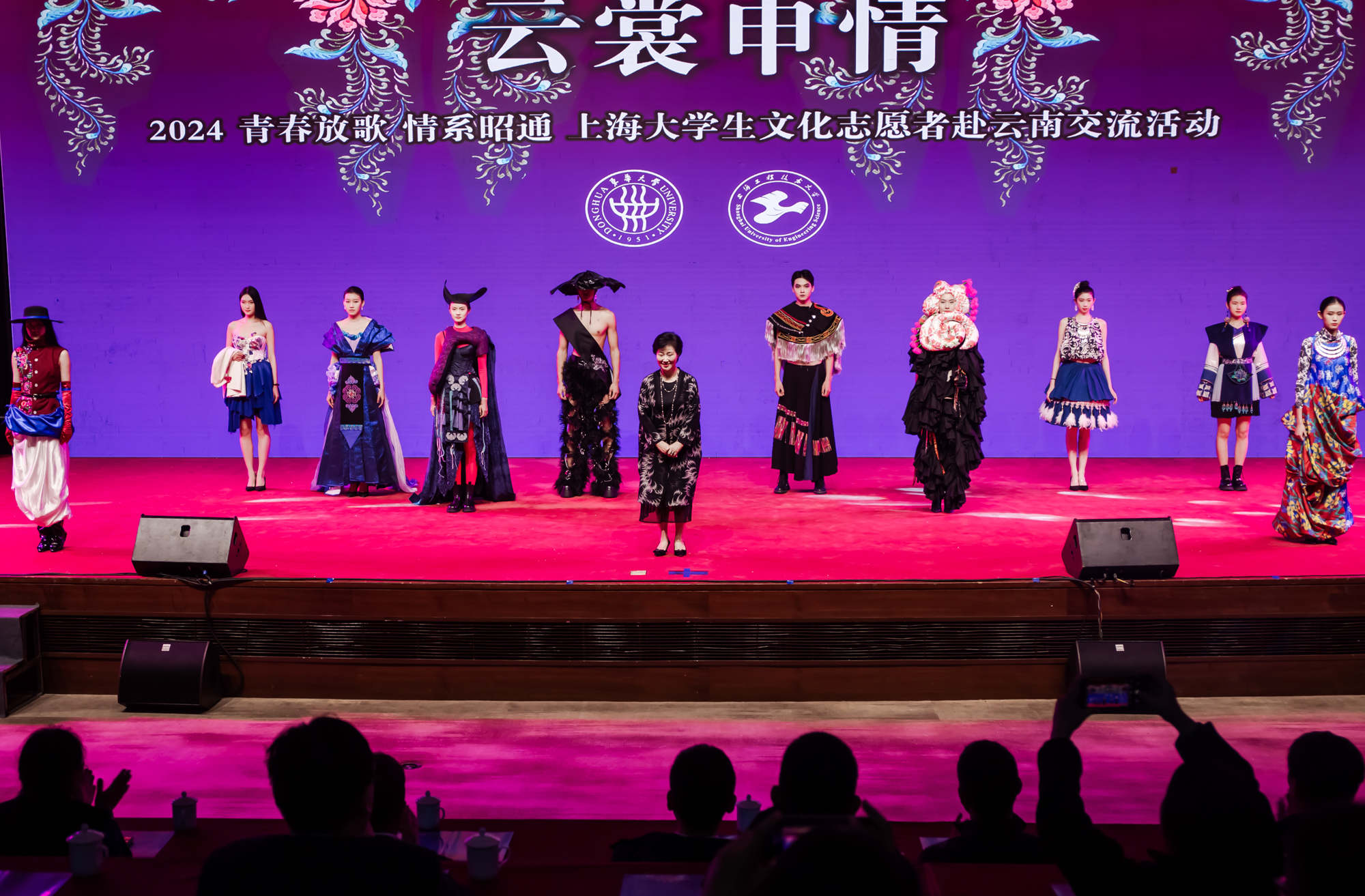 师生们还将京剧、川剧变脸、木偶戏、武术与民族传统体育、服装秀等多个“非物质文化遗产”表演艺术和元素搬上舞台,彰显中华文化的深厚底蕴和特色神韵,兼具国际视野与创新精神,共结跨越时空的文化纽带,受到当地师生群众的热烈欢迎。昭通学院参演的《胜利起点》节选自原创情景舞蹈诗剧《赓续扎西魂》,寻甸二中参演作品《火塘谣》展现彝族文化特色……交流活动在《我和我的祖国》全场大合唱声中落下帷幕,整场演出节目编排紧凑、内容精美,涵盖了十余种艺术形式,为沪滇文化交流注入了新的活力。