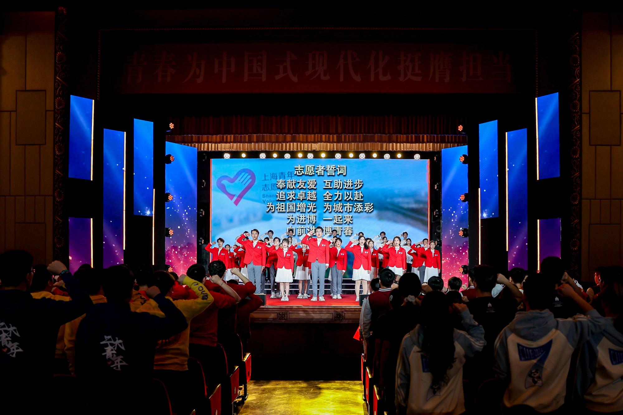 10月15日,第七届中国国际进口博览会志愿者上岗宣誓仪式暨志愿者临时党、团组织成立仪式在上海展览中心友谊会堂举行,“小叶子”们庄严宣誓,志在以青春之姿、奉献之心为祖国挺膺担当。