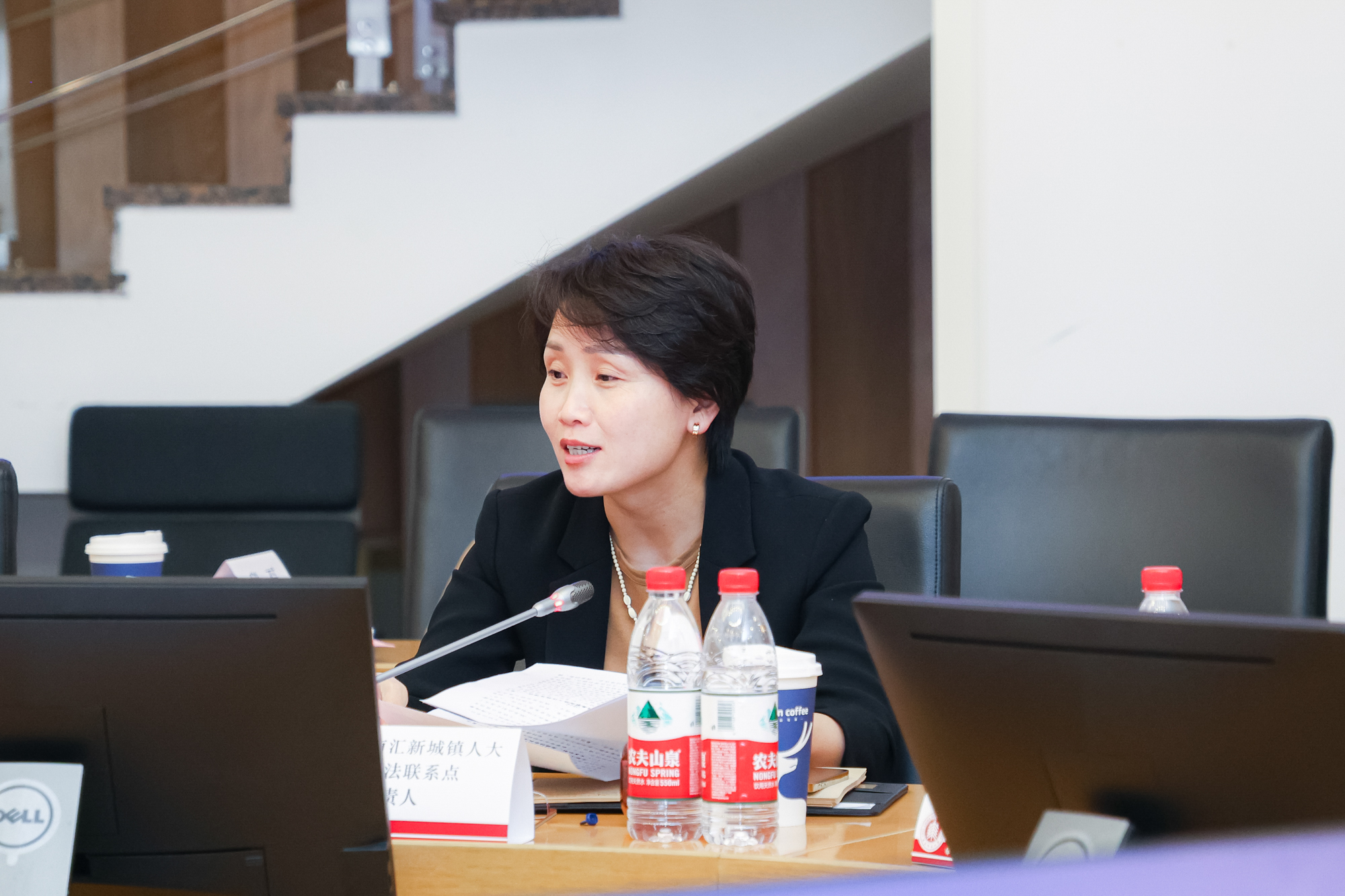 浦东新区南汇新城镇人大基层立法联系点负责人介绍该联系点工作情况与经验。一是完善机制,促进立法联系点工作的建设保障。二是整合资源,促进产业发展和社会治理相结合。三是创新立法,服务新片区治理建设。下一步工作还要继续推进规范化建设、社会资源挖掘等。