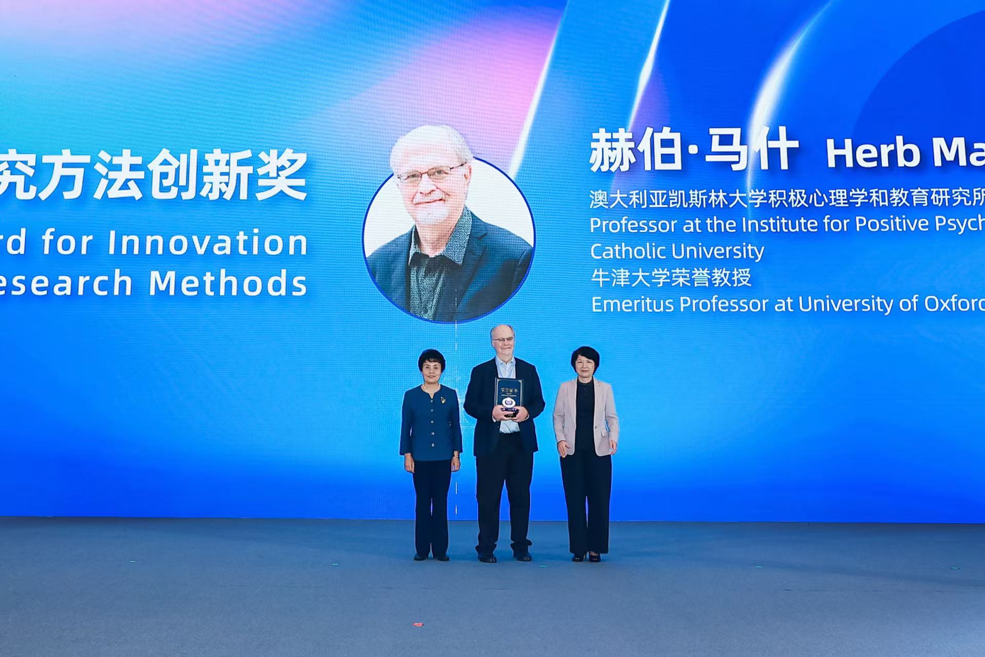 完美(中国)官方教育学部主任袁振国,香港中文大学教授、美国教育研究协会院士和国际应用心理学会院士侯杰泰,为第八届“教育实证研究优秀成果奖”获得者颁奖