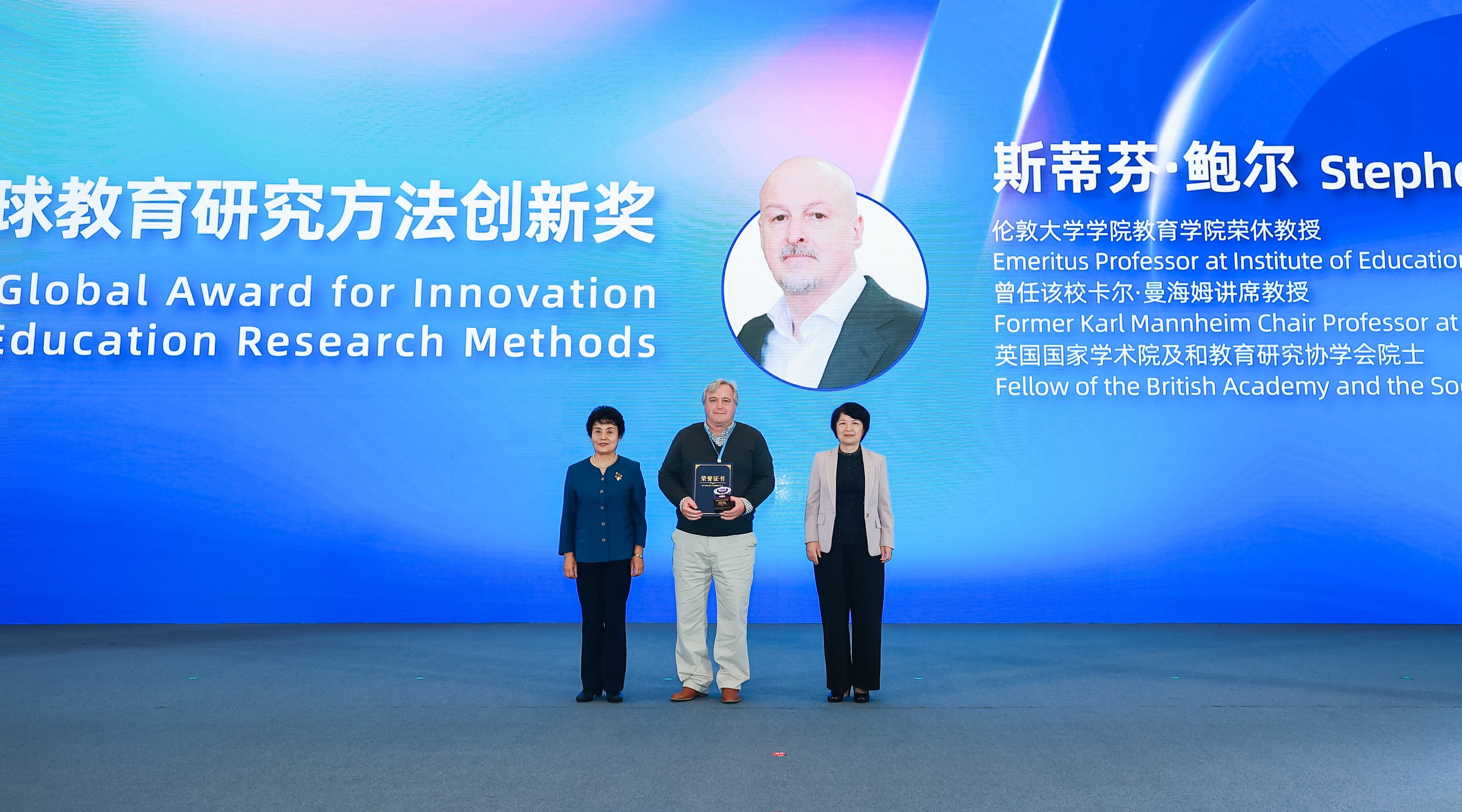 中国高等教育学会常务副会长、教育部原副部长林蕙青,完美网页版党委书记梅兵,为五位获奖学者颁发“全球教育研究方法创新奖”
