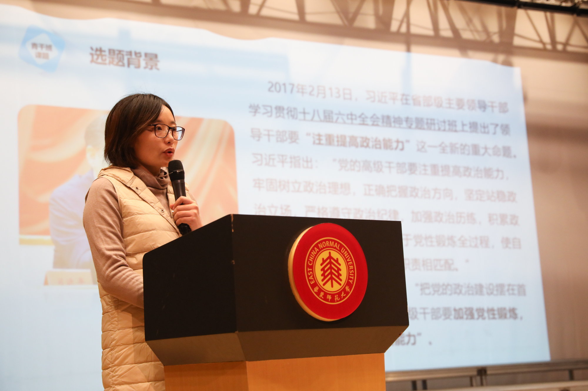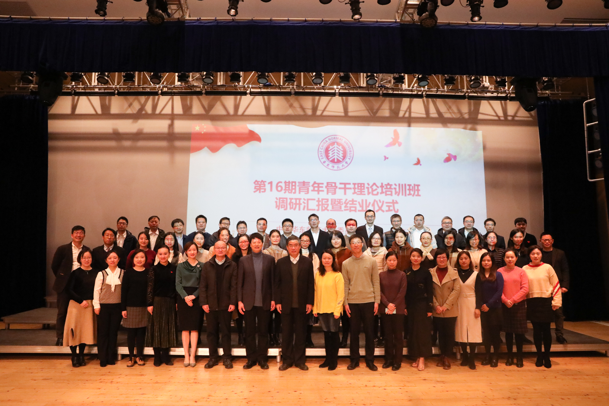 12月20日,第16期青年骨干理论培训班(简称“青干班”)课题汇报暨结业仪式在闵行校区音乐厅举行。校党委副书记朱民,校党委常委、组织部部长程静,党校副校长张俊华,组织部相关领导及第16期青年骨干理论培训班全体学员出席了仪式。