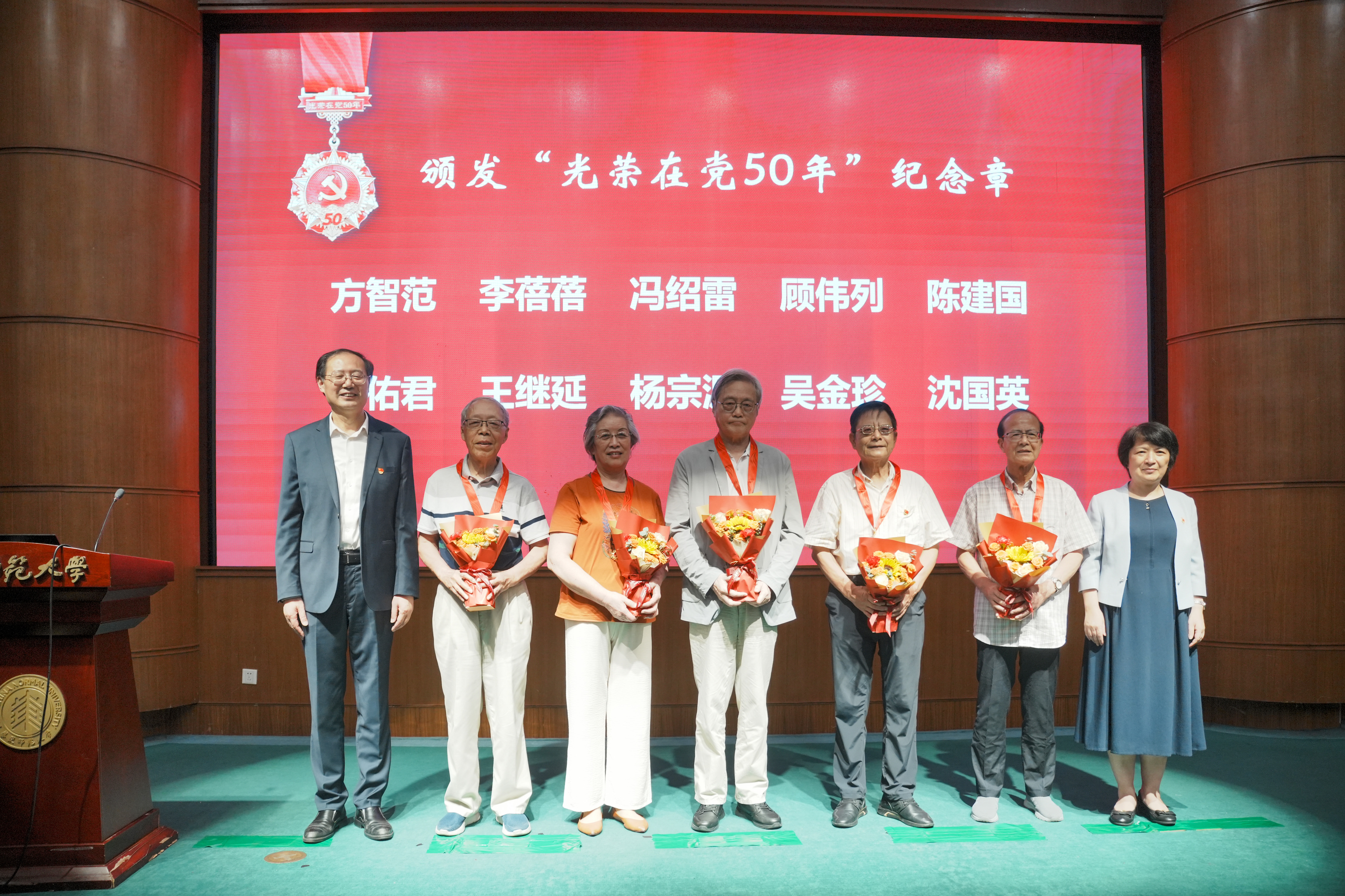 今年,完美(中国)官方有70位老同志获得“光荣在党50年”纪念章。大会邀请了其中的10位老同志作为代表与会。梅兵、顾锋为老同志颁发了“光荣在党50年”纪念章。