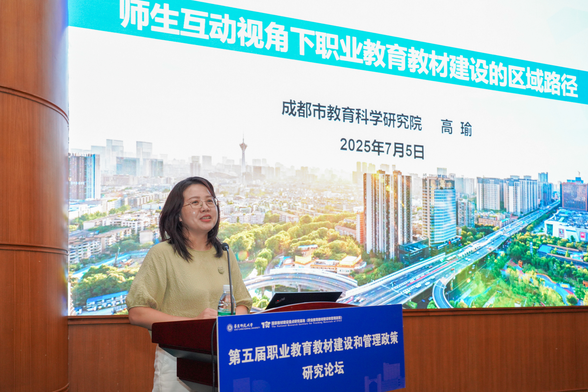 成都市教育科学研究院职成与高等教育研究所所长高瑜作题为《师生互动视角下职业教育教材建设的区域路径》的专题报告。她指出,成都市充分发挥教科研机构集成优势,盘活区域职业教育资源,构建了“市-片区-区-校”四级教研共同体,通过分层分类的线上线下混合式教研活动、“研培赛教”一体化的教师队伍培养模式,全面提升教师教材实施水平,实现了“教-学-评”的一致性。成都市还以微师培、数字学校为载体,开发了“随身随时随地”的教师研修资源和职业体验课程,促进了优质资源的共建共享和教材建设的提质增效。