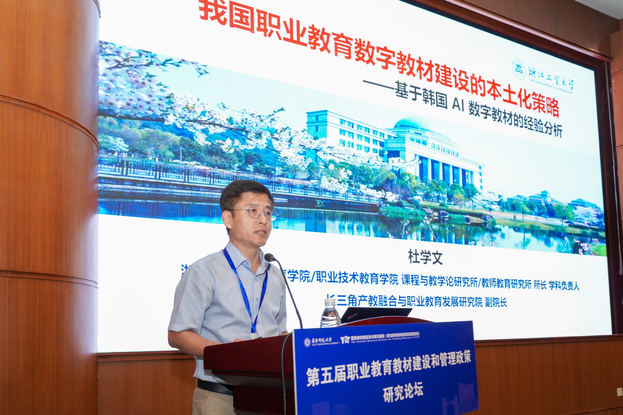 浙江工业大学教师教育研究所所长杜学文作《我国职业教育数字教材建设的本土化策略——基于韩国AI数字教材的经验分析》报告。韩国推动AI数字教材建设的核心举措包括夯实数字基础设施、系统性提升教师数字能力、构建完善制度保障以及深化公私部门协作。我国职业教育数字教材建设的本土化,应致力于科学界定职业教育数字教材的独特内涵与功能定位,加强国家级顶层设计与统筹规划,推进数字基础设施建设和教师数字素养培育,构建适配职业教育数字教材的标准规范与保障体系,激发政府、院校、企业、出版方等多主体协同创新活力。