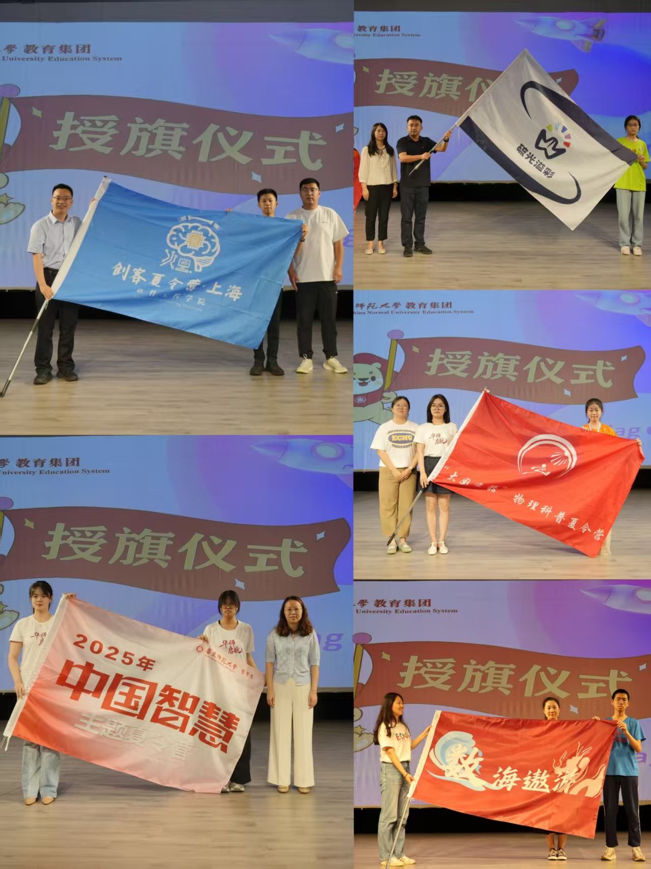 授旗环节中,“硫光溢彩”化学营、“数海遨游”数学营、“大国重器”物理营、“哲韵飞扬”哲学营和“科技一夏,编码未来”软件编程营的营员代表接过营旗,标志着各分营活动正式启动。未来一周,营员将通过专家讲座、实验操作、项目研讨、成果展示等活动,提升学术素养、创新能力与团队精神。