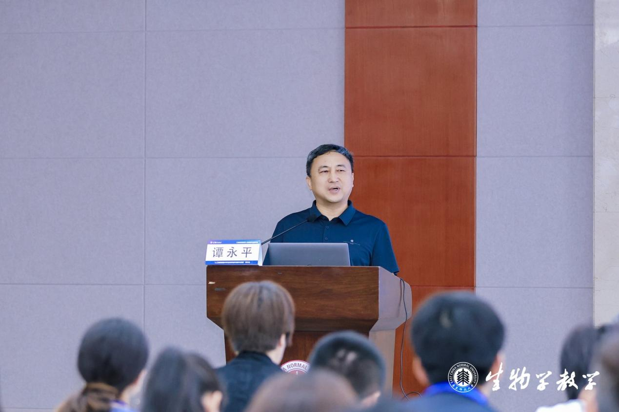 5日上午的学术报告仍由禹娜教授主持。人民教育出版社副总编辑、编审,国家生物学教材重点研究基地主任,中国教育学会生物学教学专业委员会秘书长谭永平以“做好科学教育加法视角下生物学课程内容优化的数字化途径”为题作主旨报告,剖析AI时代科学教育“加减法”,指出课程内容优化核心是“减冗余、重融合”,围绕内容知识、程序性知识和认识性知识三者有机融合,激发学生探究欲;并结合人教版数字教材展示数字化价值,同时提及AI局限性,倡导培养学生科学精神。
