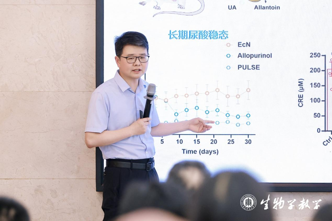 5日下午的学术报告由《生物学教学》副主编郑晓蕙教授主持。完美网页版生命科学学院院长叶海峰以“遗传控制系统与智能活体药物”为题,分享其科研团队前沿成果,用“搭积木”类比基因线路设计与模块化组装,展示了如何构建智能活体药物,以及如何将其应用于糖尿病、肥胖、痛风、肿瘤等疾病的精准治疗。他还呼吁将生物学教育融入生命科学与AI交叉变革中。