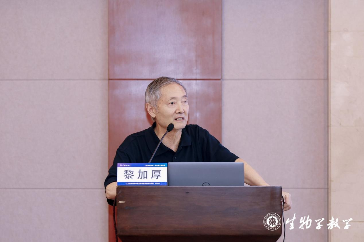 上海师范大学教育学院黎加厚教授作“生成式人工智能辅助教育与生物教学创新”报告,从“做中学+AI”理念出发,讲解本土大模型教学功能及使用路径,引导教师从“能用”到“善用”,并引导教师创建教学智能体,掌握其训练逻辑。他还指出,人机协同将成教育新常态。