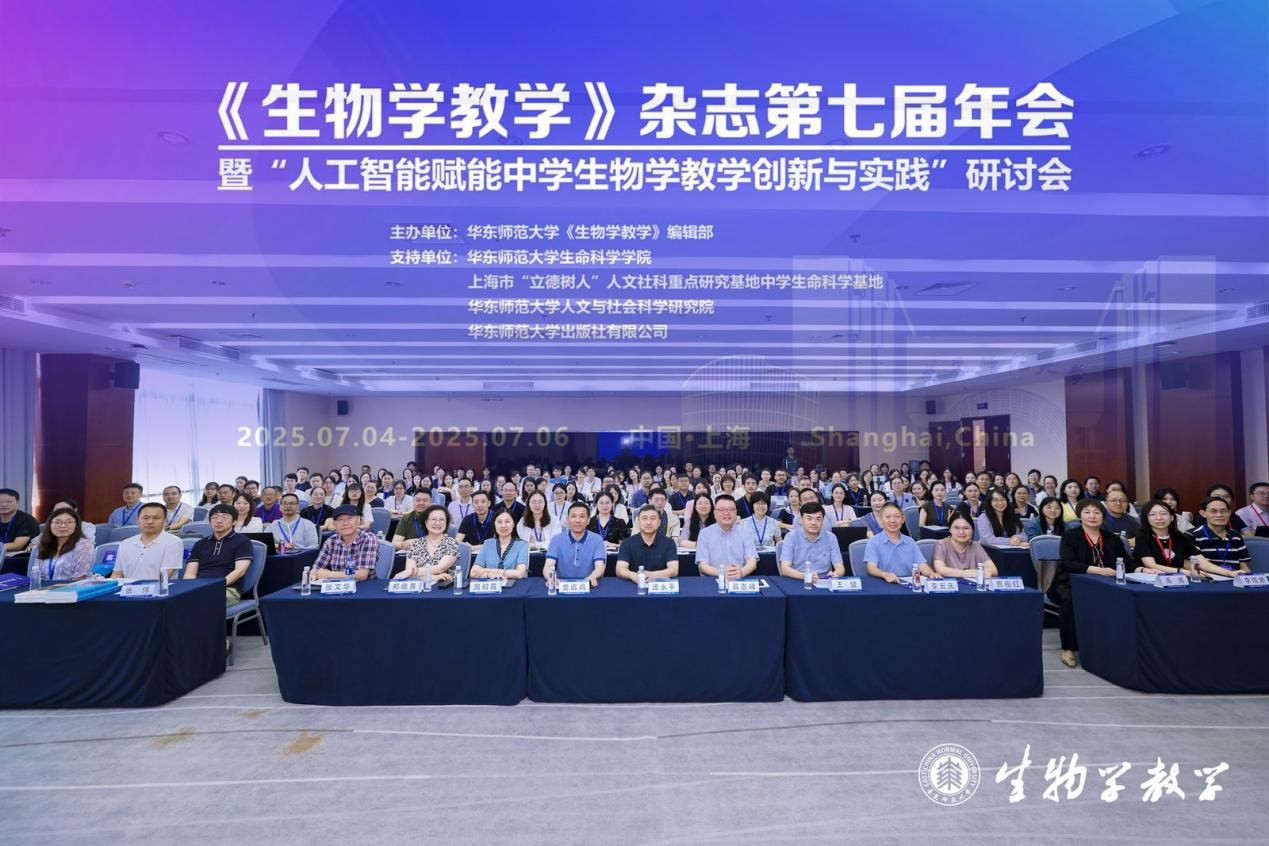 7月4日至6日,《生物学教学》杂志第七届年会暨“人工智能赋能中学生物学教学创新与实践”研讨会在完美网页版闵行校区召开。全国200位中学一线教师、生物学教研员、名师工作室成员及高师相关专业师生齐聚上海。本次会议由《生物学教学》编辑部主办,完美网页版生命科学学院、上海市“立德树人”人文社科重点研究基地中学生命科学基地等多家单位支持,聚焦人工智能赋能中学生物学教学的理论与实践、挑战与应对策略等内容。