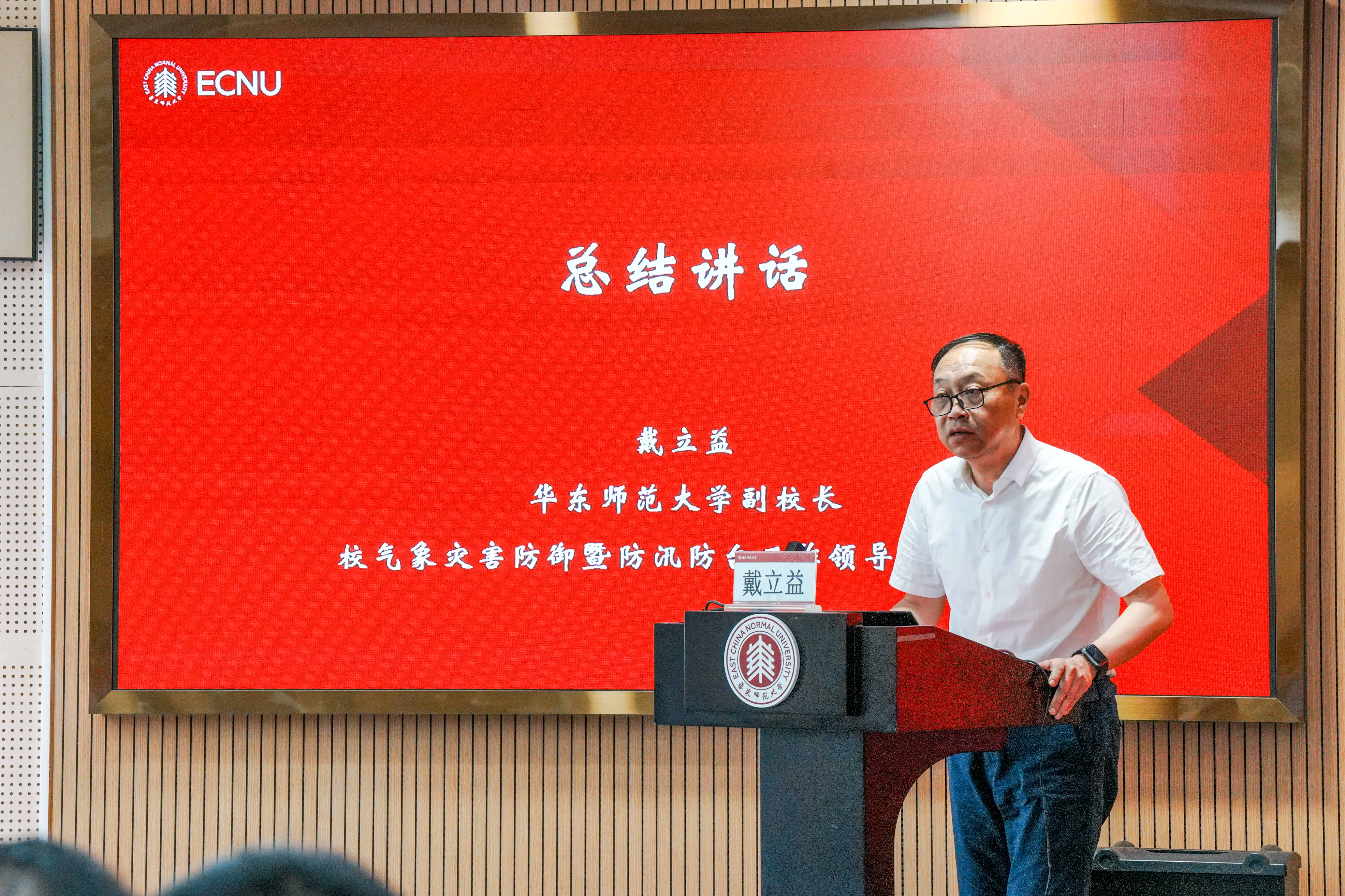 副校长、校气象灾害防御暨防汛防台工作领导小组组长戴立益作总结讲话
