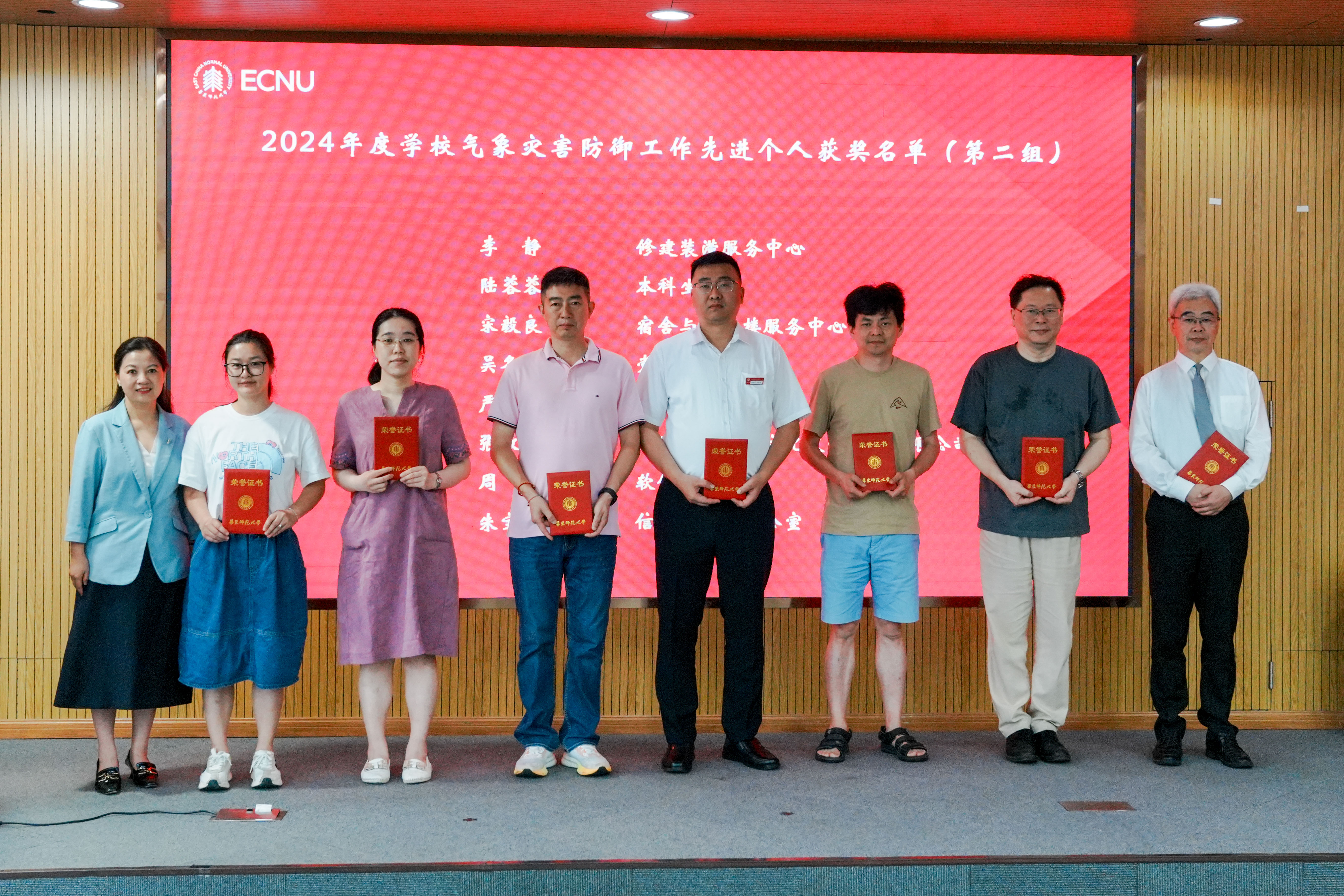 后勤党委书记魏勇宣读《关于表彰2024年度完美网页版气象灾害防御工作先进集体与先进个人的决定》,戴立益、张惠虹、后勤保障部部长刘萍为15名先进个人和10家先进集体颁发了荣誉证书。