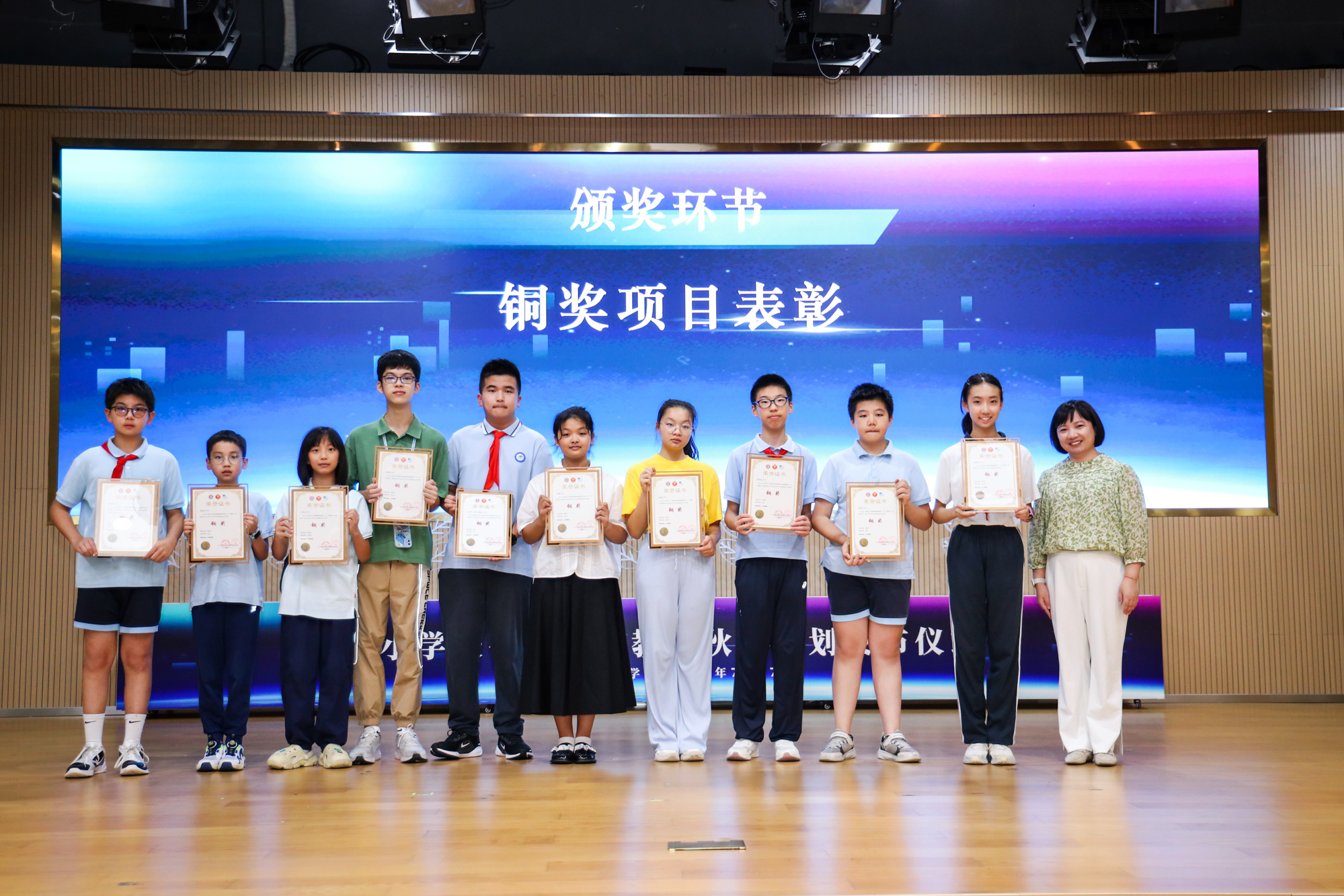 在展示环节,8岁到24岁各学段的创客代表们同台,共同许下“以科创汇聚力量,以奋斗传递幸福”的约定。从用AI技术活化红色课文、设计社区安全充电站,到探索植物固碳潜力、开发适老助幼科技应用,跨学段的小创客们展现了青少年用科技关注现实痛点的创造力。用科技解决社会真实问题,大中小学生收获的不仅是知识,更是以创新致善世界的信念。跨学段学生聚焦特殊群体需求与公共服务,开发无障碍出行辅助、AI学习效率工具及社区服务方案,以科技之力推动社会幸福感提升。