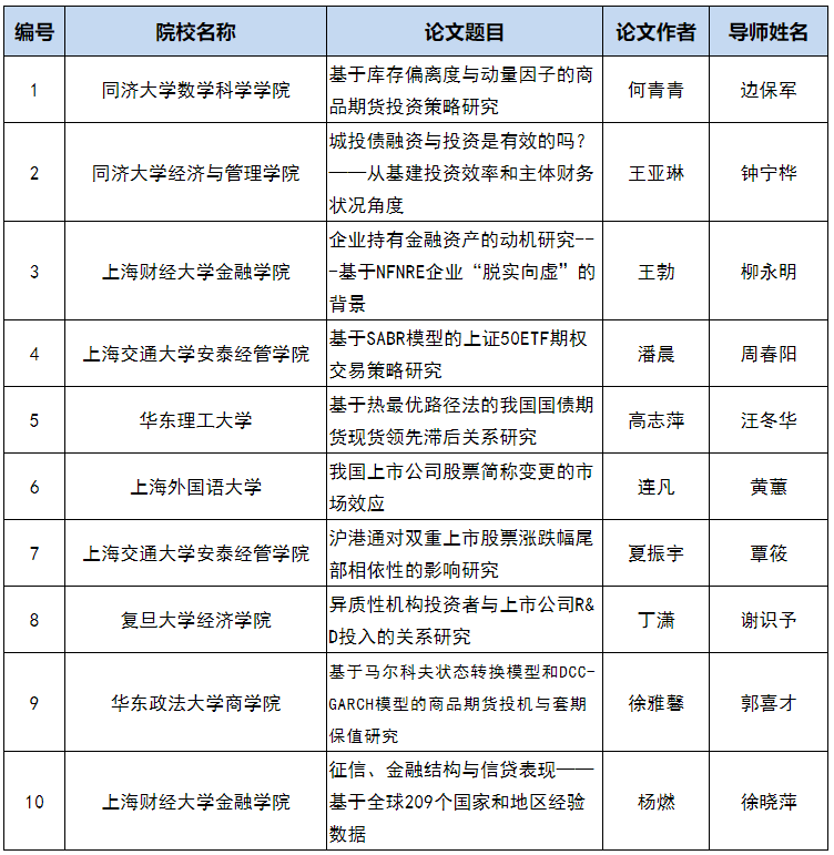 “第二届上海市金融硕士优秀学位论文”获奖单位