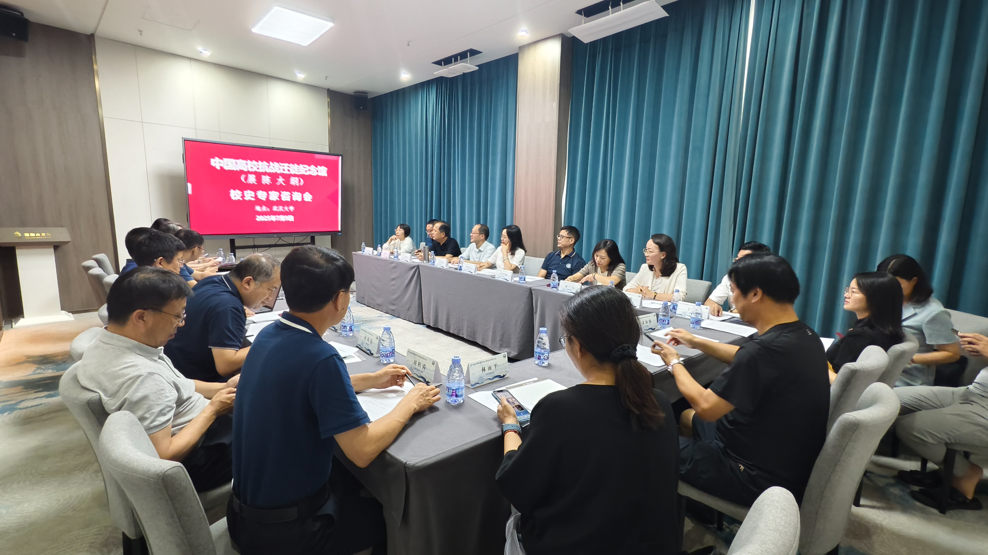 7月9日,在湖北武汉召开第三次展陈大纲研讨会上,北京大学、清华大学、天津大学、武汉大学、南京大学、南开大学、东南大学、四川大学、华中师大等20余所高校的29名校史专家现场参会,另有中国人大、中山大学、厦门大学、山东大学等20余家高校校史研究专家线上参与,会议对迁徙馆的相关背景、内容大纲和各高校提供的档案图片等做了详细介绍和规范要求,并邀请共计40所高校的档案馆馆长和校史专家讨论和审定展陈大纲,提供珍贵图像素材。