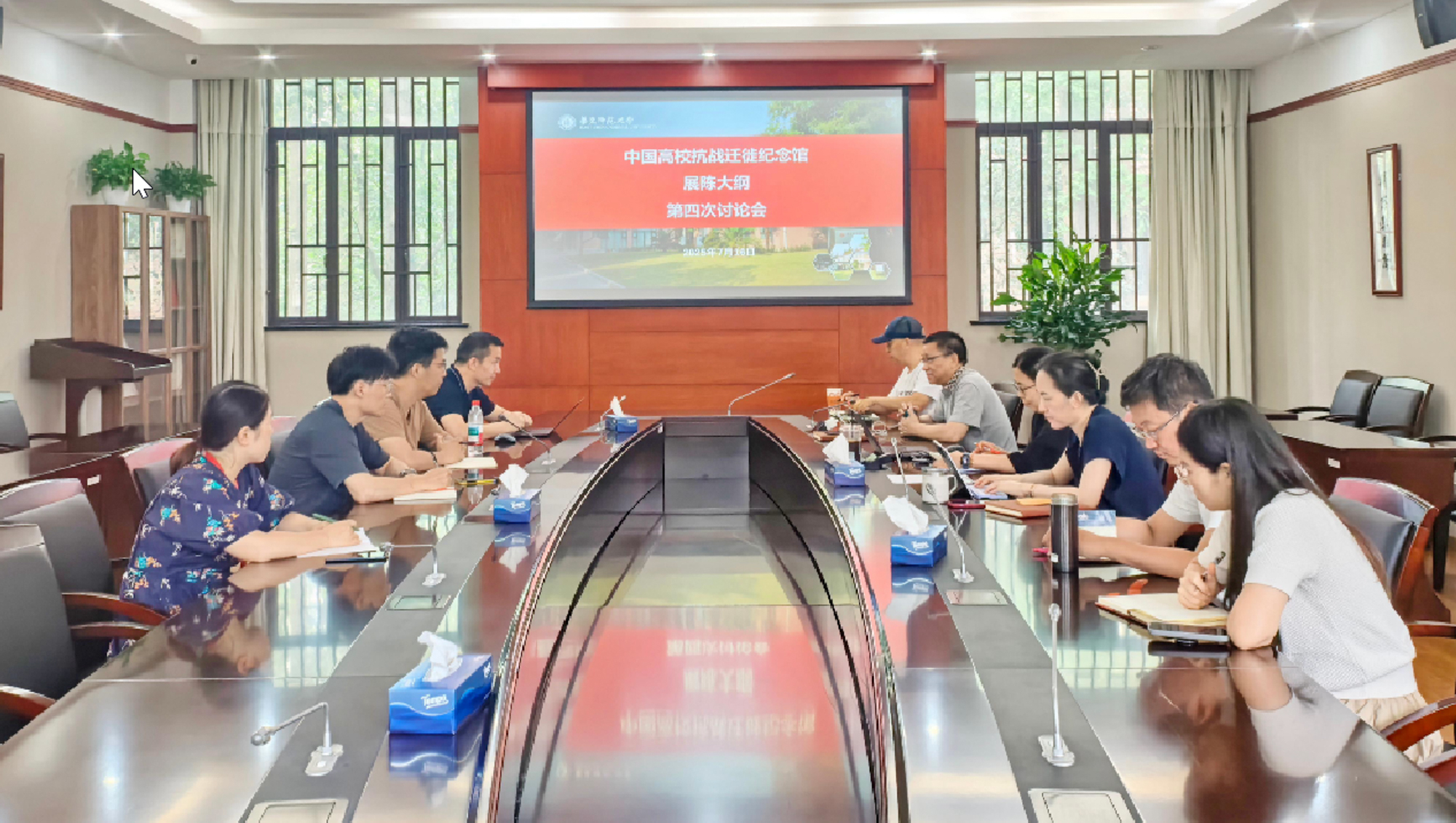 7月16日,第四次展陈大纲研讨会邀请校合作交流办主任李彦垒、以及合作单位和编撰小组成员共9人,聚焦大纲初稿修订与增补规划。