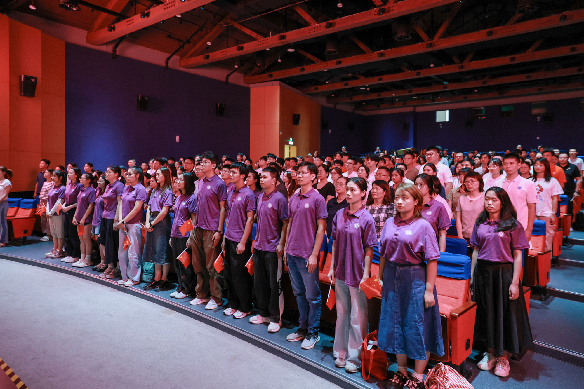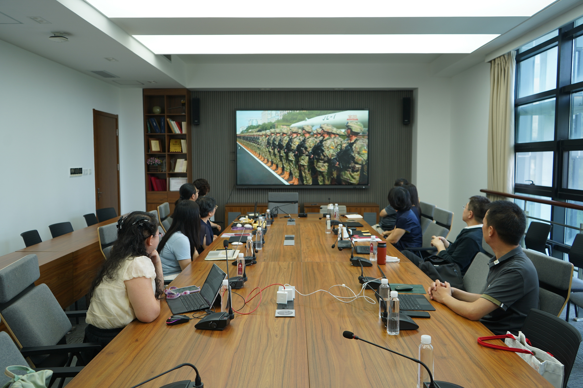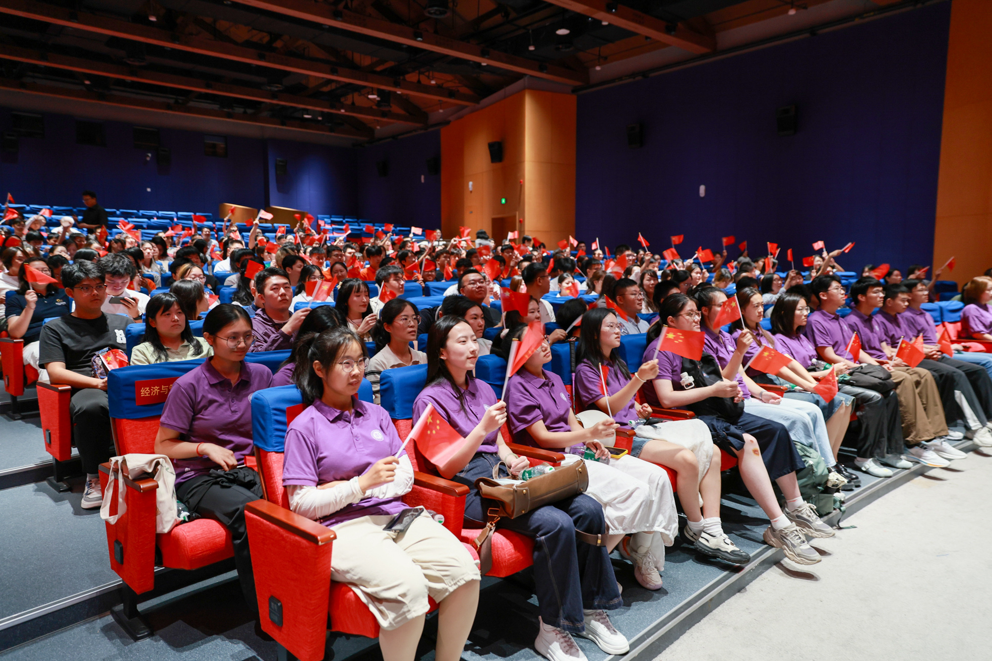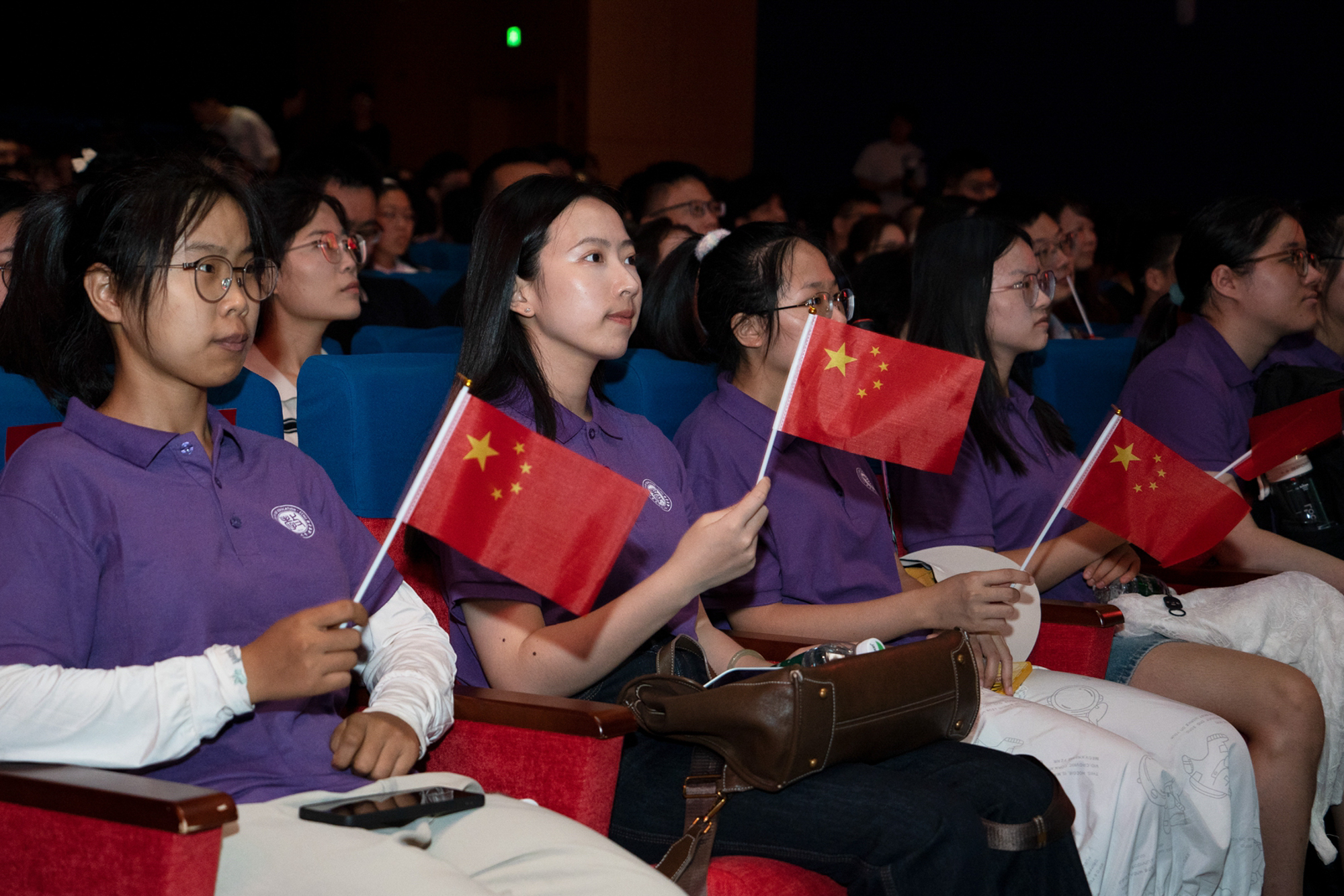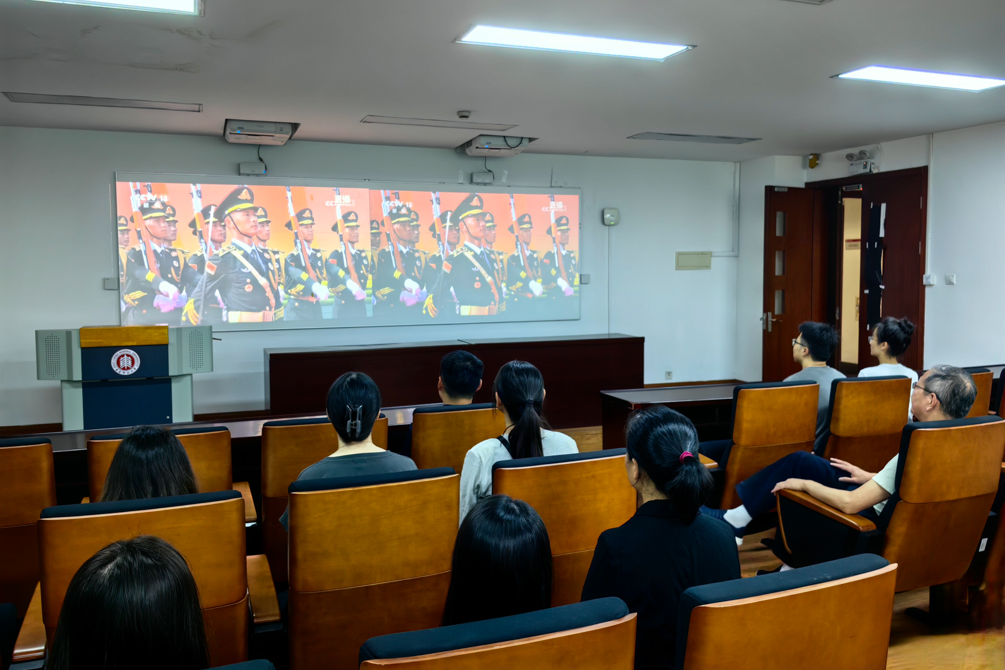 在普陀校区思群堂,师生集中收看