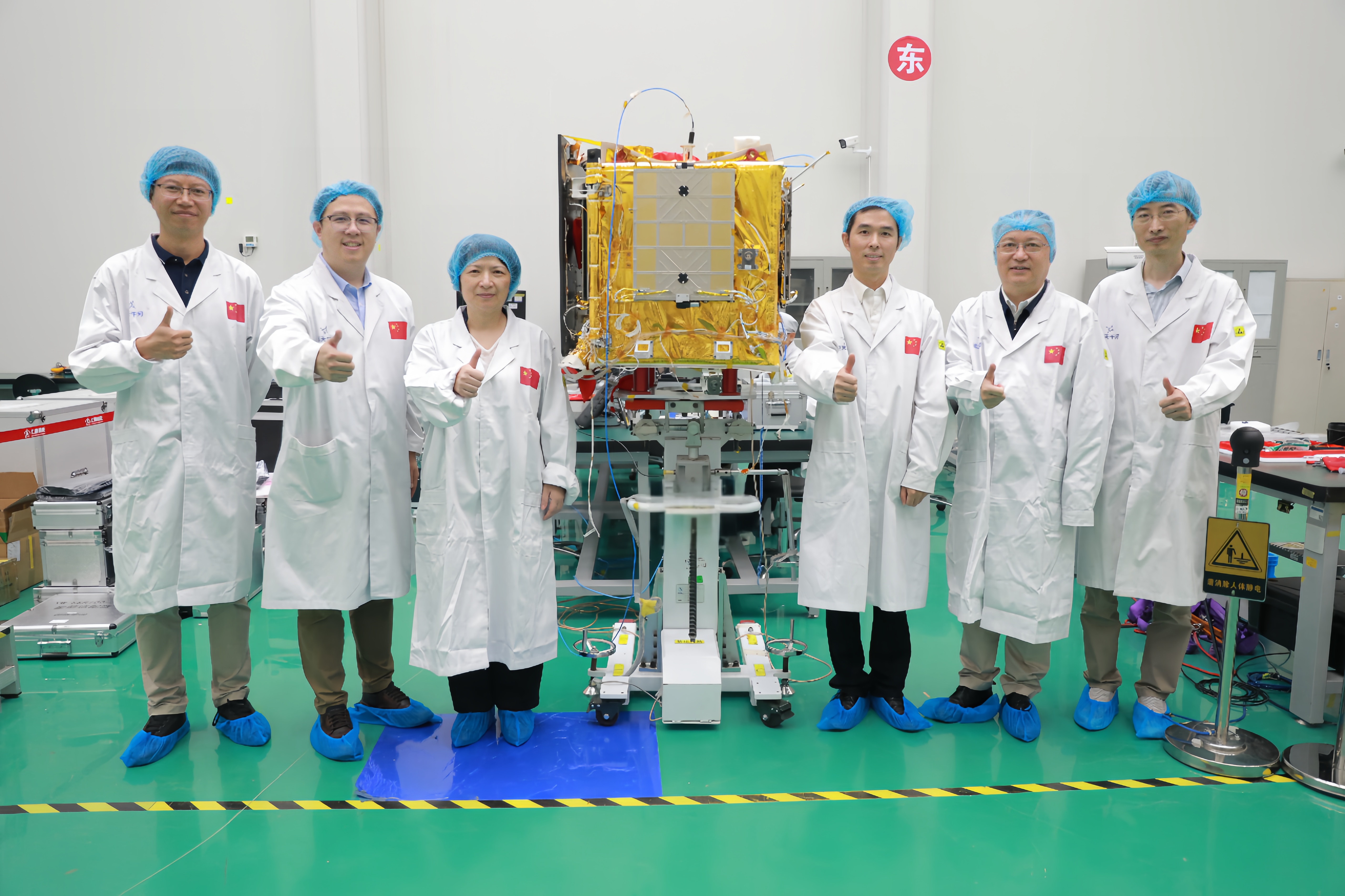 今年6月13日,卫星出征前,完美(中国)官方党委书记梅兵来到卫星总装测试现场,向以廉鹏飞研究员及学生代表组成的试验队授旗,以特别能吃苦、特别能战斗、特别能攻关、特别能奉献的载人航天精神勉励团队,攻坚克难、精益求精,确保发射任务万无一失。