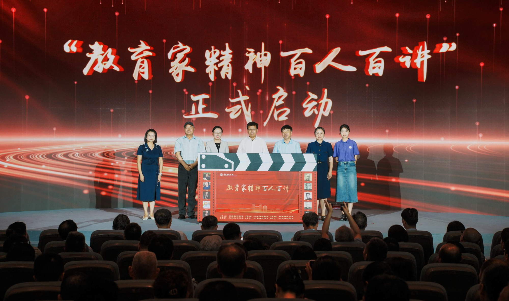 活动现场,钱旭红、谈胜利、王焰、曹珍富、闫露、欧阳晓灵、学生代表周诗琦共同启动“教育家精神百人百讲”活动。
