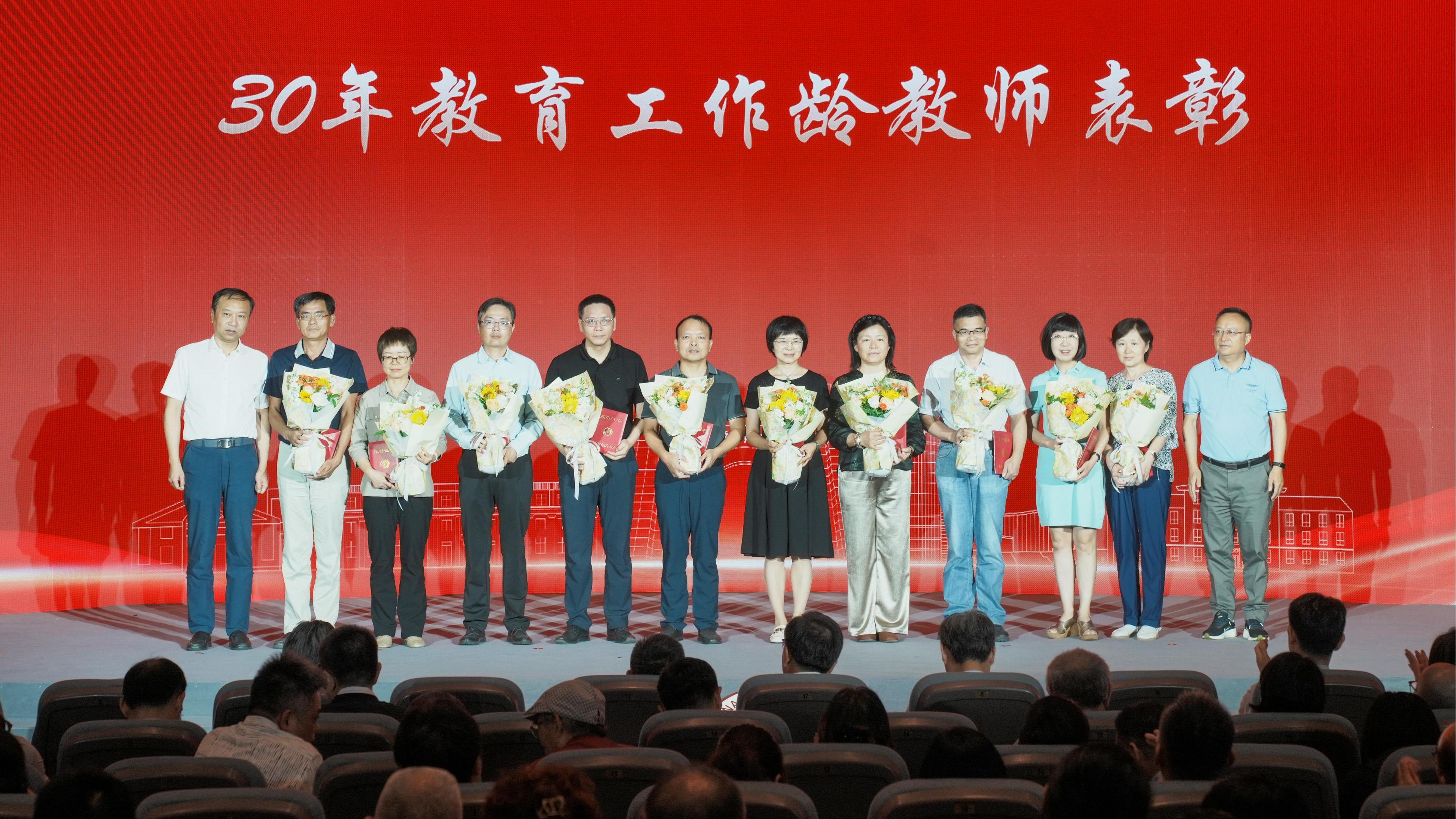 主题活动上,学校对从事教育工作满30年的教师进行了表彰,向71位坚守教育岗位30载的教师致敬。