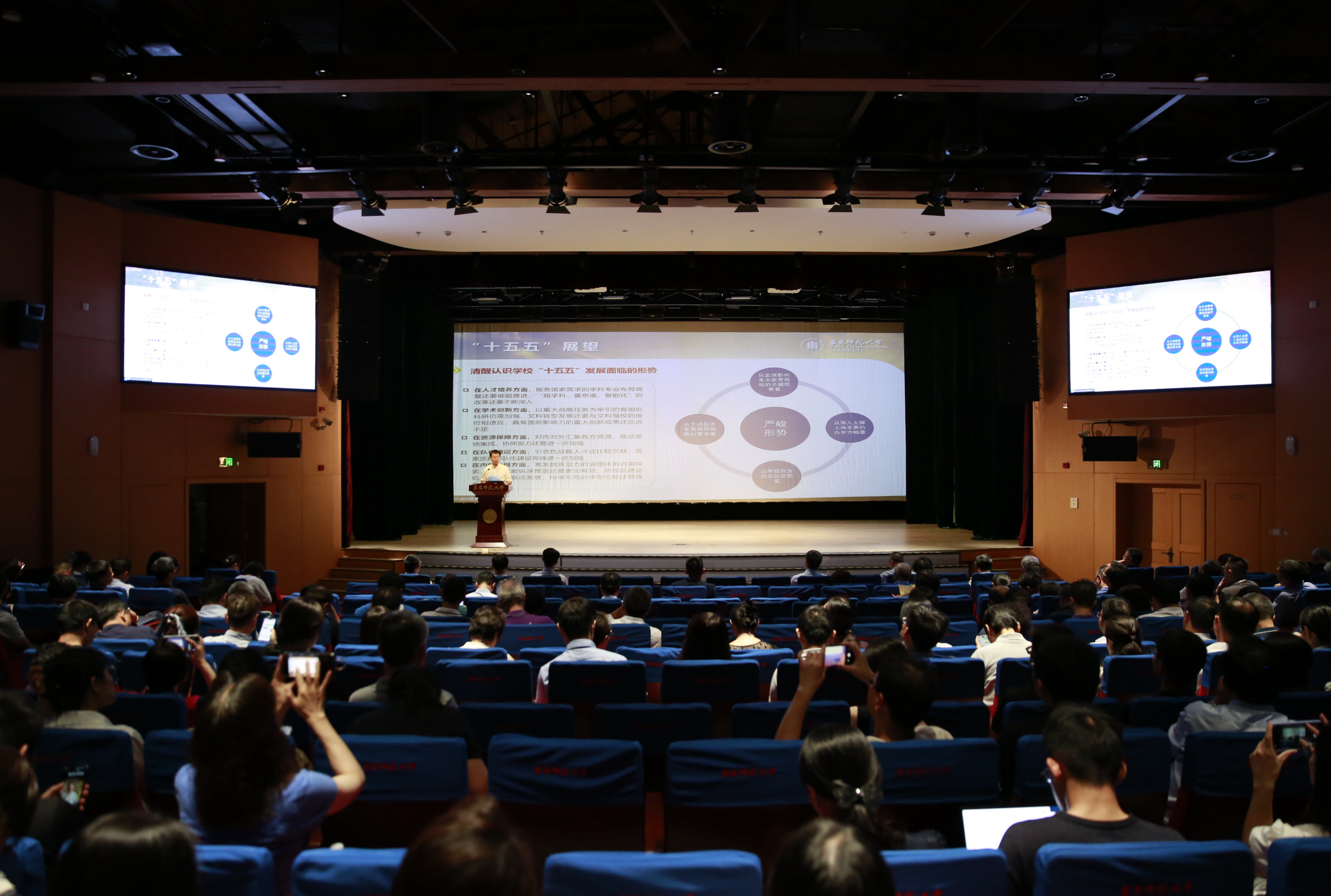 校领导、校学术委员会及各专门委员会委员、全体中层干部、各教工党支部书记、各部门工会主席、民主党派和人民团体代表、离退休教职工代表、师生代表等参加会议。会议在普陀校区设主会场,闵行校区设视频分会场。