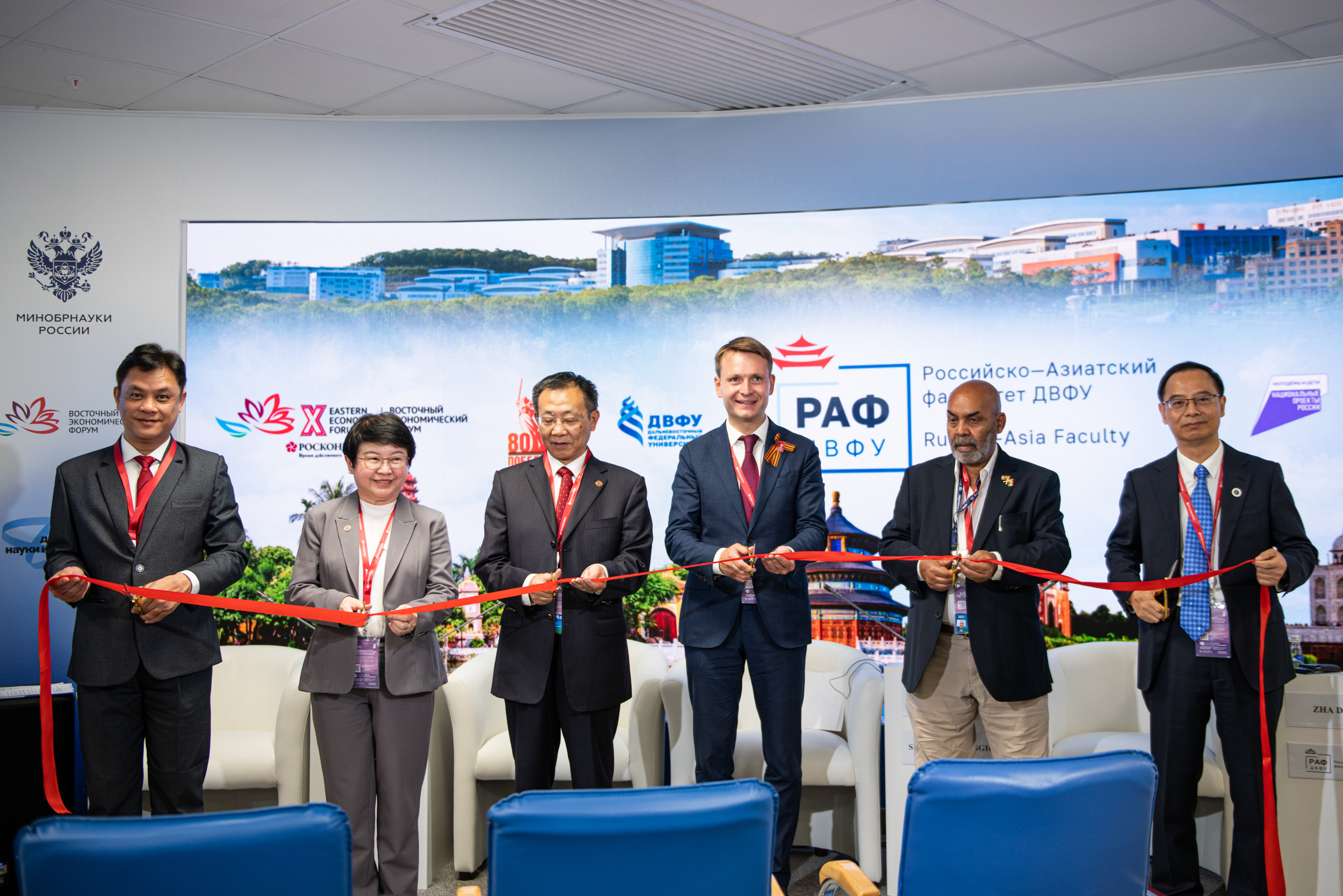 参会高校代表共同为远东联邦大学俄亚学院进行剪彩